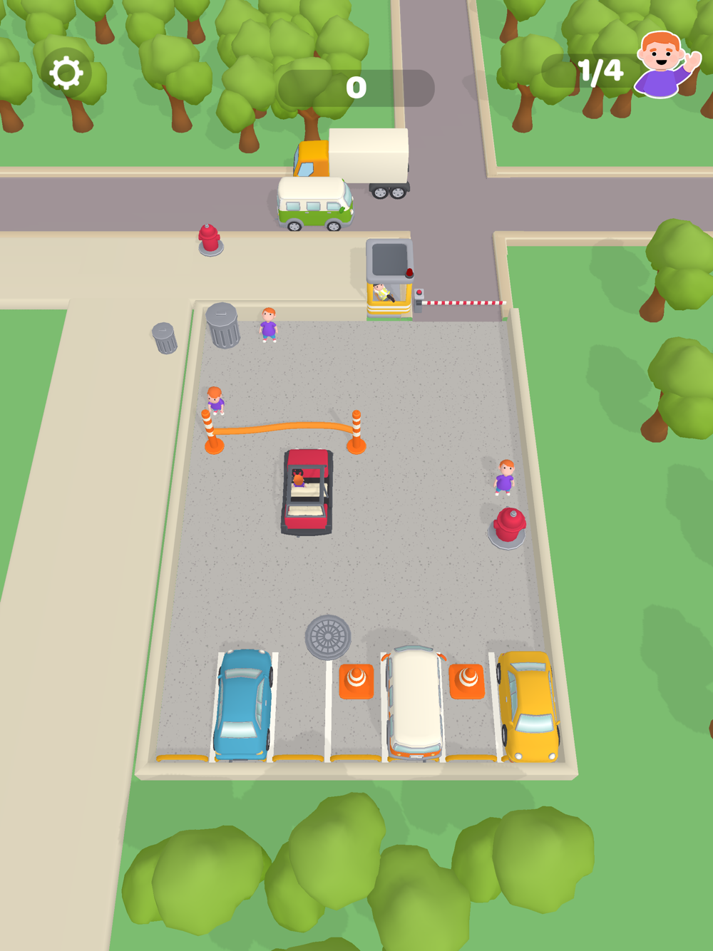 Pick up passengers as an uber. Use your wits to get in tide spaces by tumbling your car. Pick up all the passengers to win.