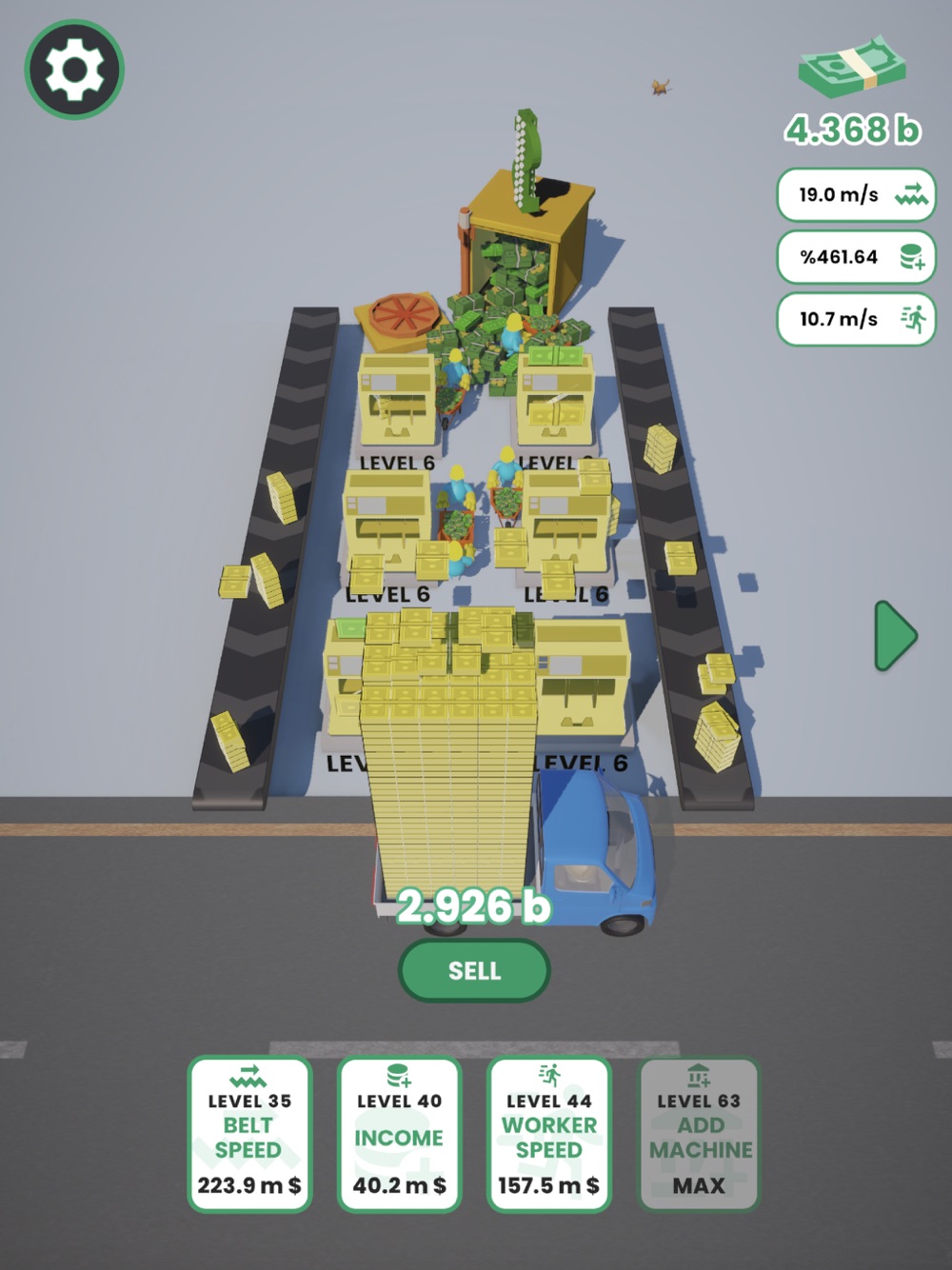 Add machines to your precious money counter factory and count BIG amounts of money. Merge machines to get the next level machines. Use your money wisely. Your little workers transports the money from safe to your machines. So treat them like a kind boss.