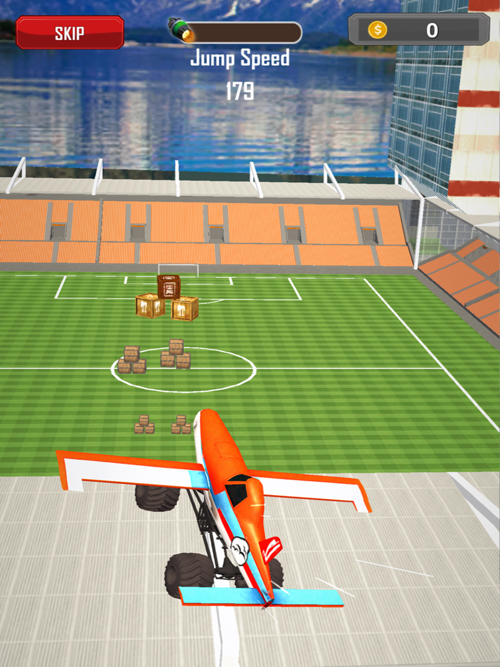 Play the insane crash landing game and drive, avoiding the obstacles. The crazy speed of the plane will not let you do a safe landing. Crash the boxes and reach the finish line.