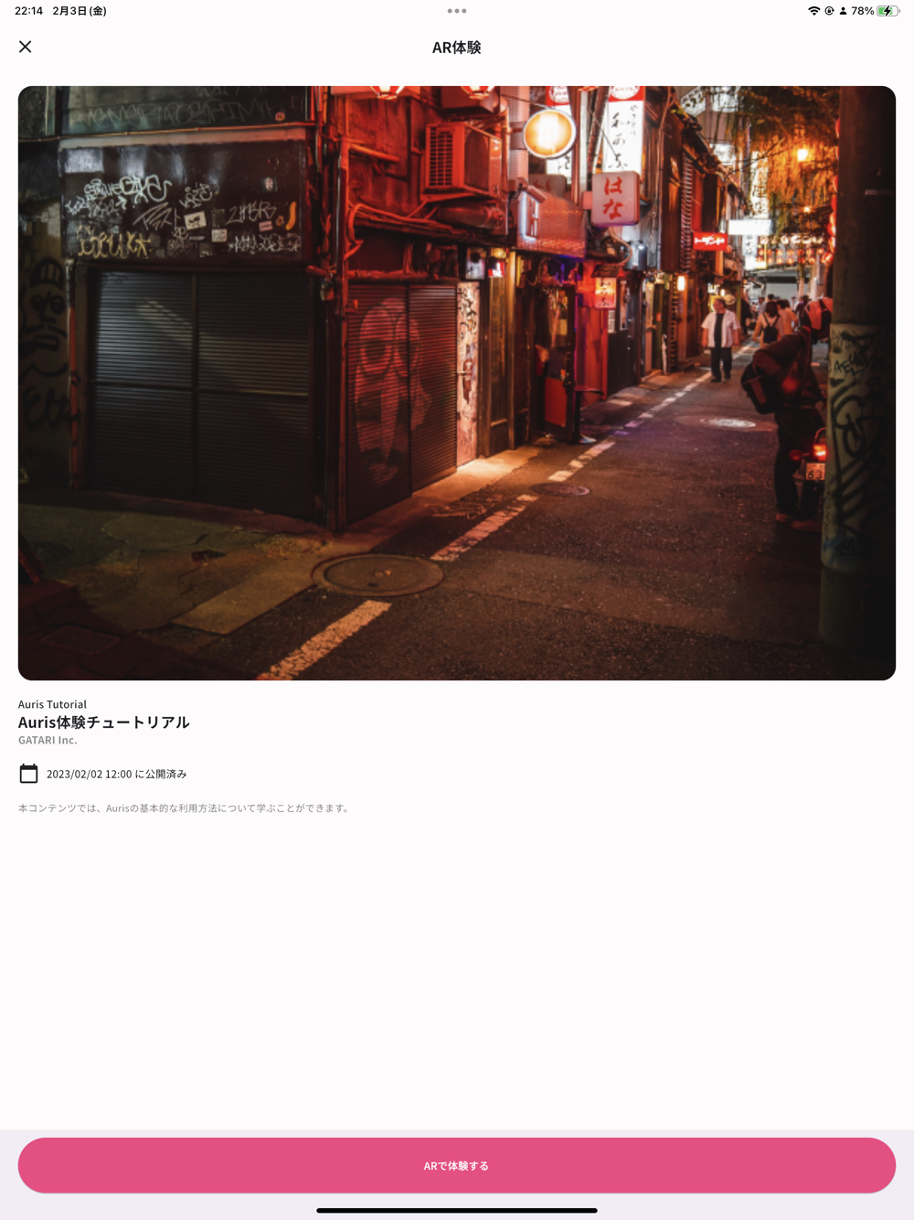 Aurisで配信されているAR体験は、そのコンテンツが配置された場所にてご体験いただけます。