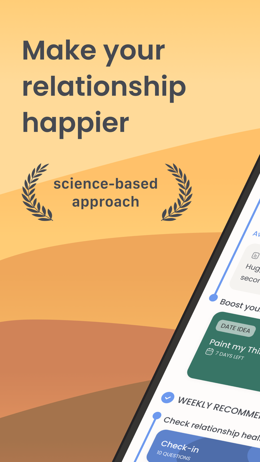 All our content is science-based. Each of our date ideas, quizzes, conversation starters and games affects Happiness Hormone levels, so using our therapy app will balance and improve your relationship and make you a happier couple.