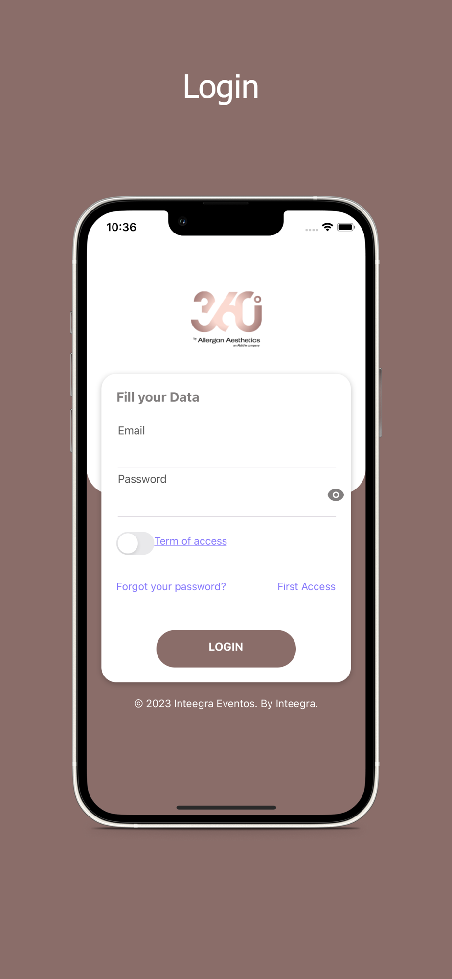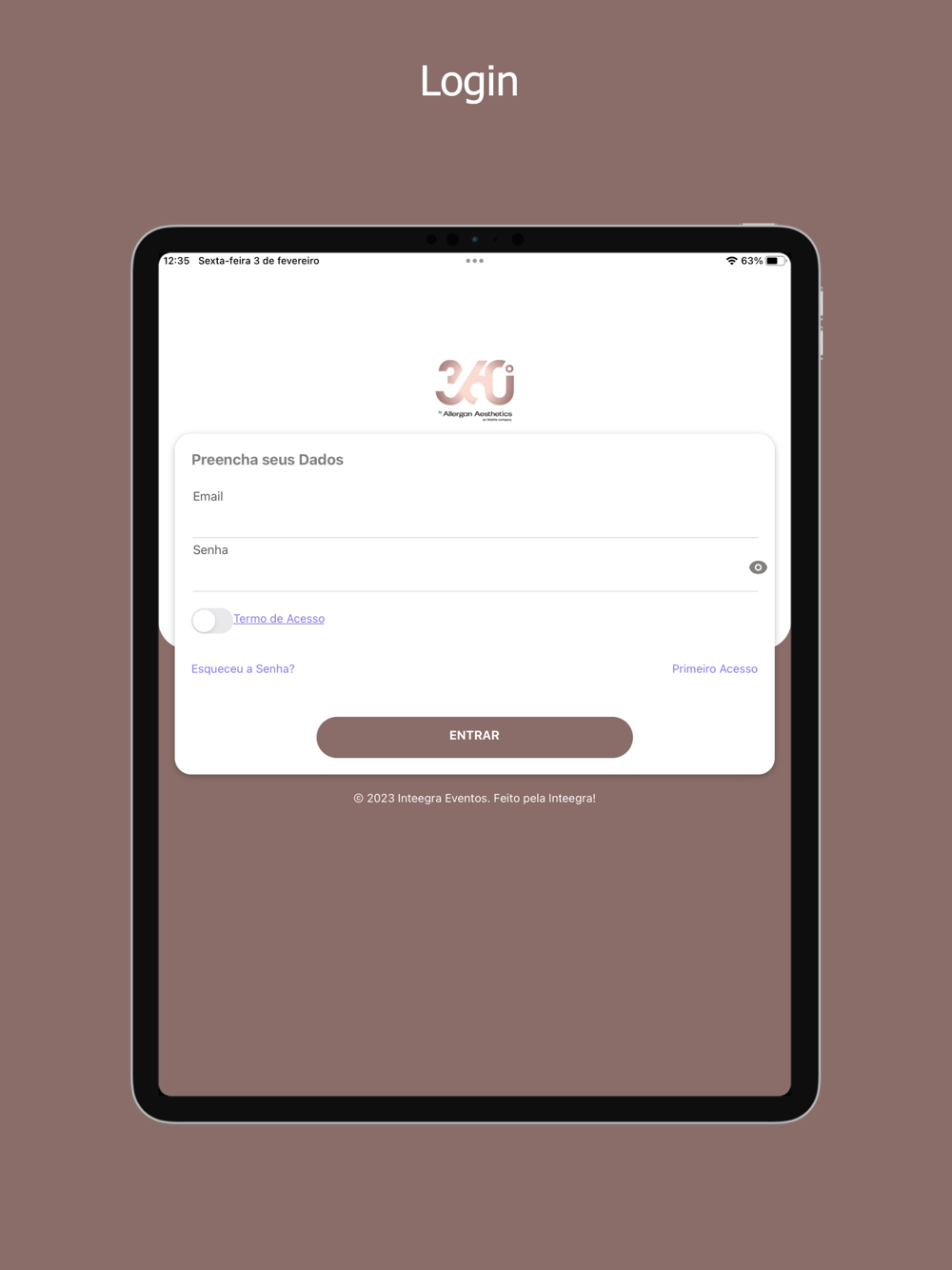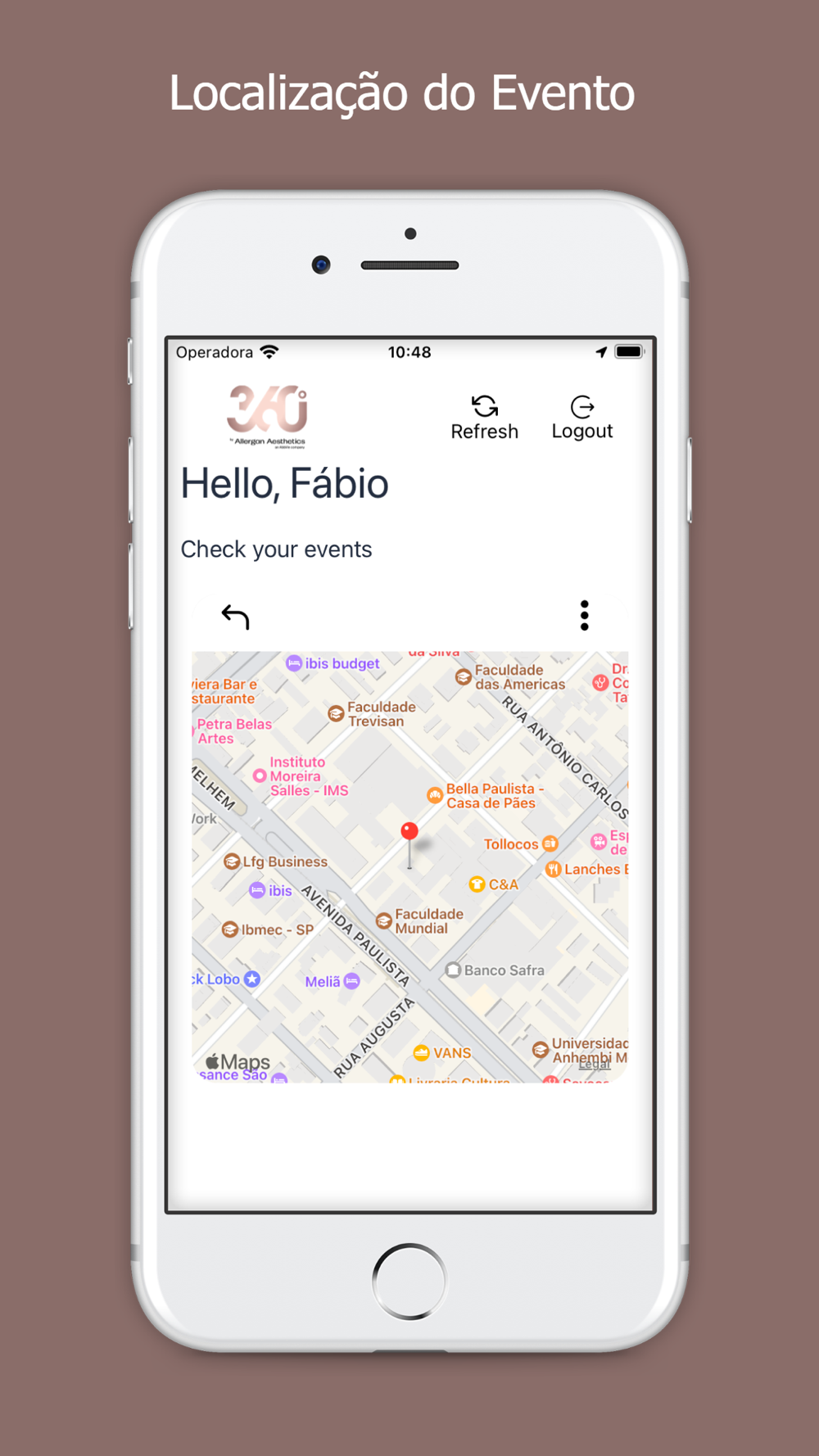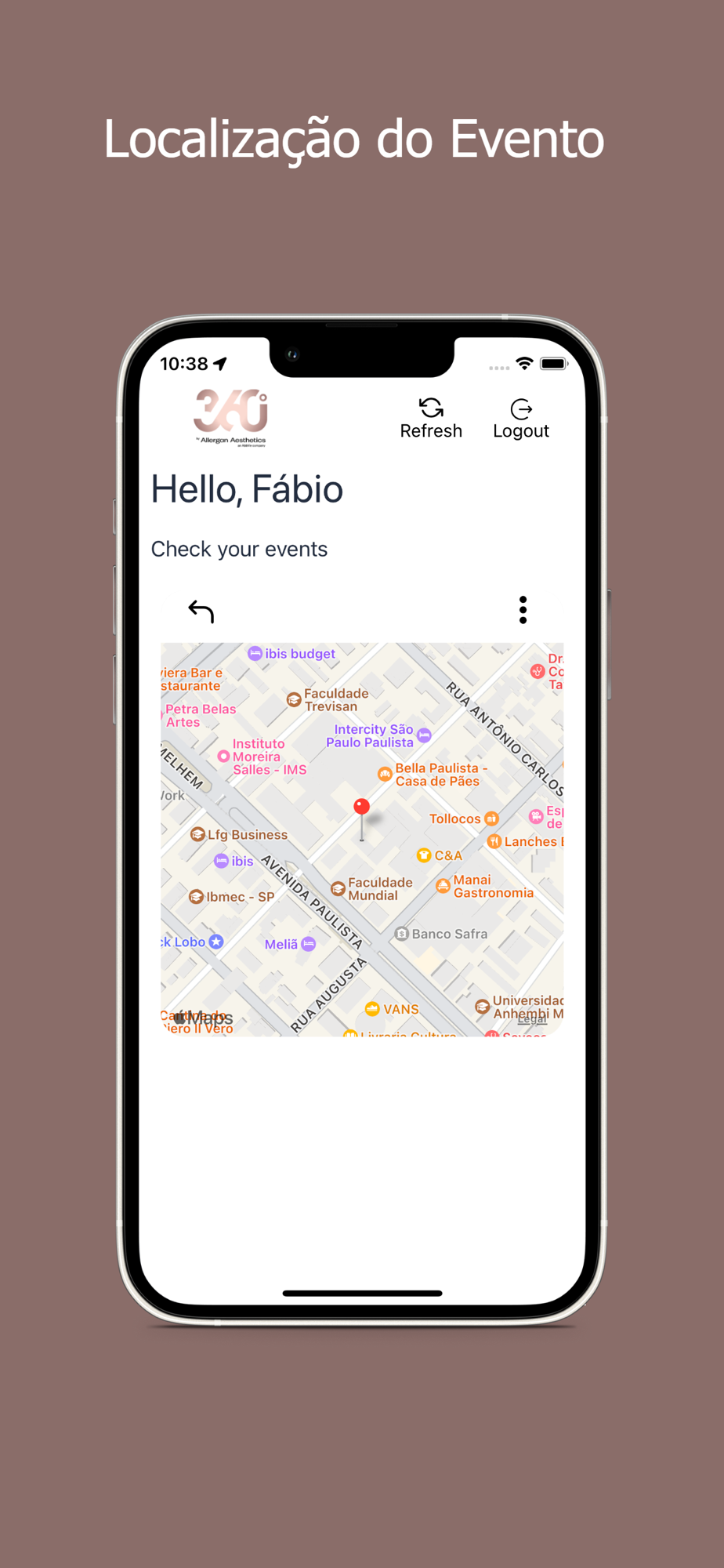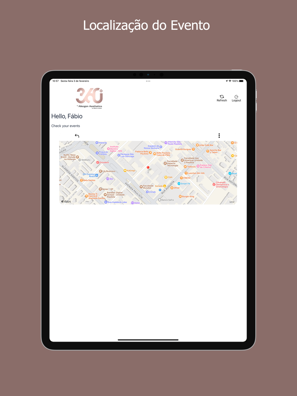 Aplicativo para o evento 360 by Allergan Aesthetics.