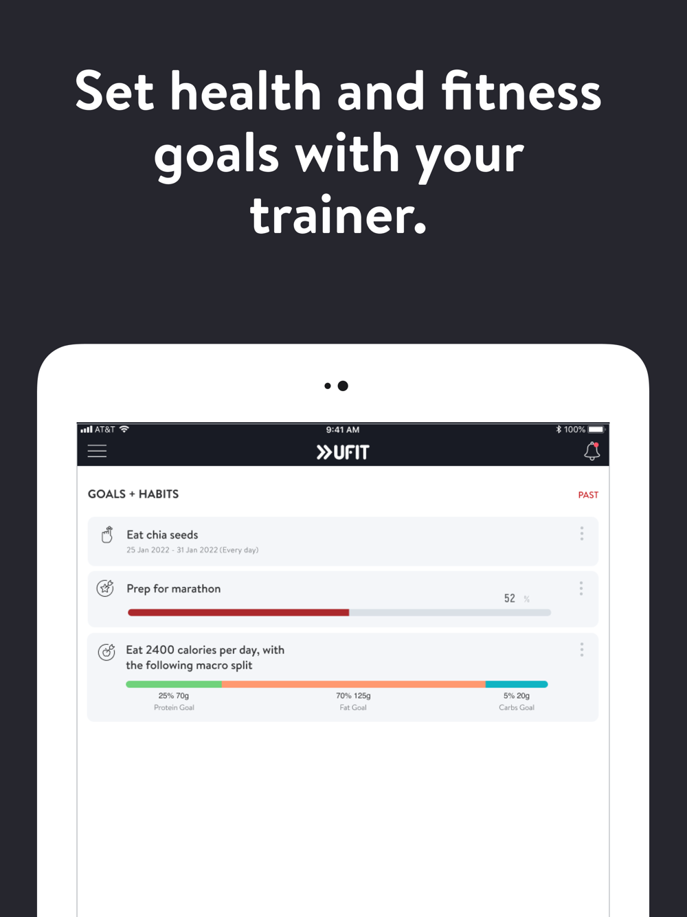 With the UFIT Coaching App, you will have access to workout programs designed specifically to help you reach your fitness and health goals! You can follow & track your workouts, your nutrition, your lifestyle habits, measurements and results–all with the help of your coach.