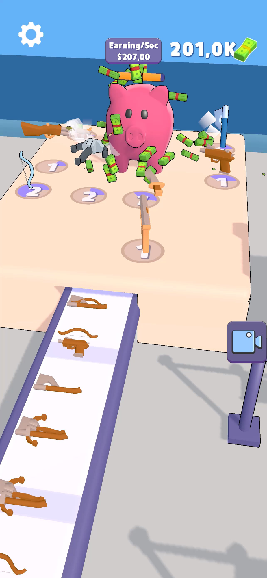 Do you want to produce the most powerful weapon? See the production of all weapons, speed up the flowband and smash the objects right away.