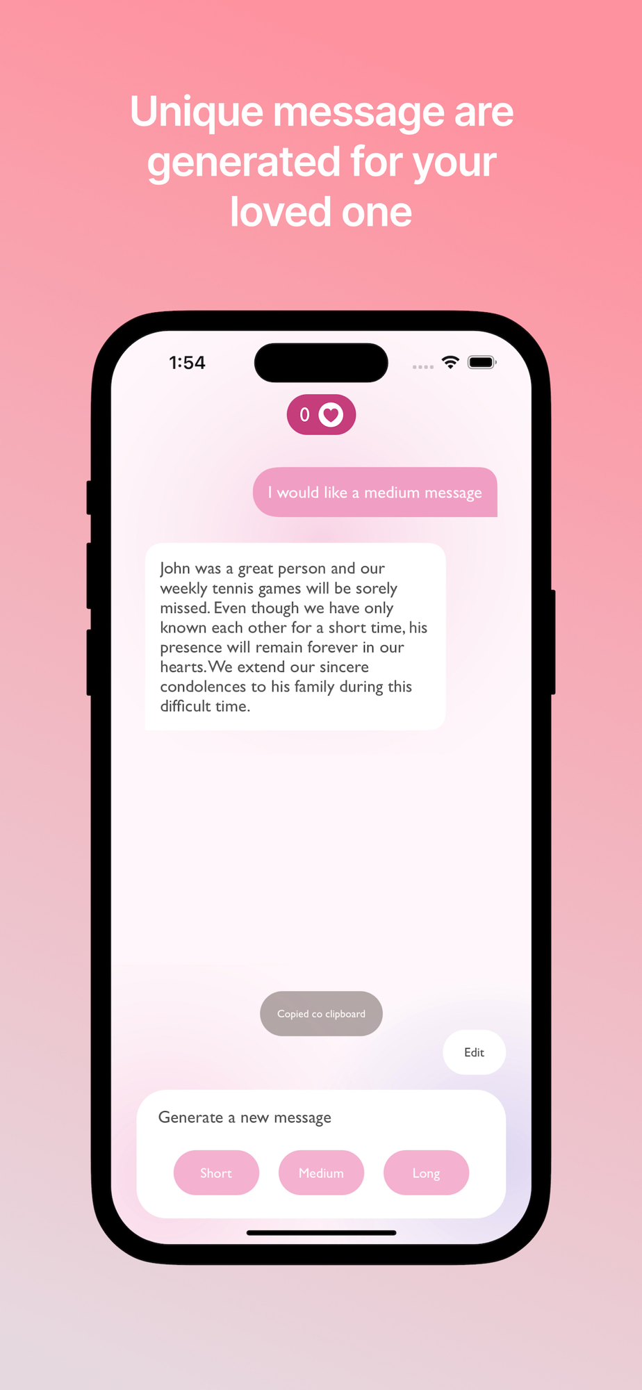 Losing a loved one can be a difficult and emotional time. Finding the right words to comfort someone during their grief can be challenging. That's where our condolence app comes in. Powered by advanced AI, our app provides you with meaningful and heartfelt condolence messages that you can use to offer your support and comfort to those who need it. Whether you're struggling to find the right words or simply want to offer a gesture of kindness, our app is here to help.
