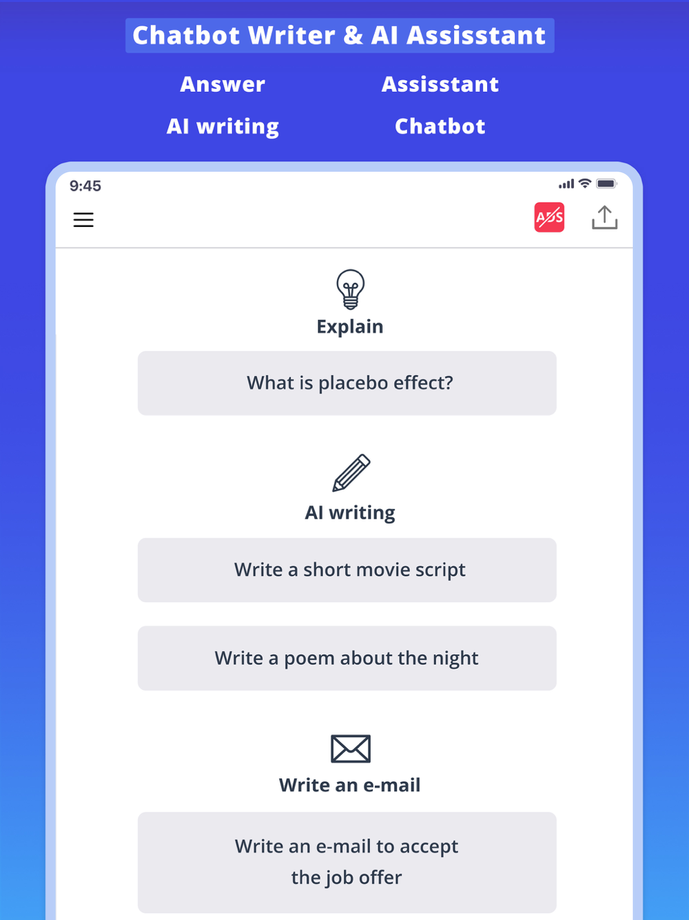 Let Chatbot Writer - AI Chatbot become your close friend, help you in all difficulties and tasks in life, you will feel more comfortable and easier when having Chatbot Writer, AI Assistant