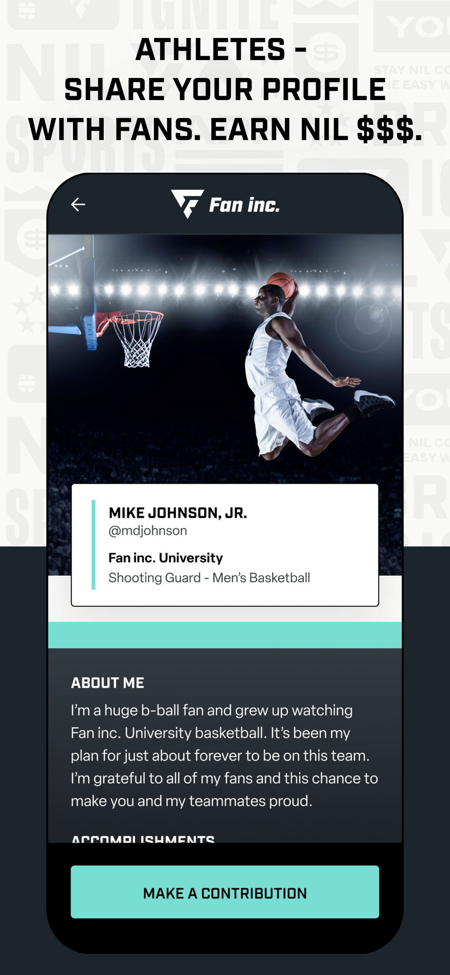 Fan inc. is the next revolution in college athletics. Supporting college athletes on their NIL journeys, we aim to give athletes and fans a new way to connect!