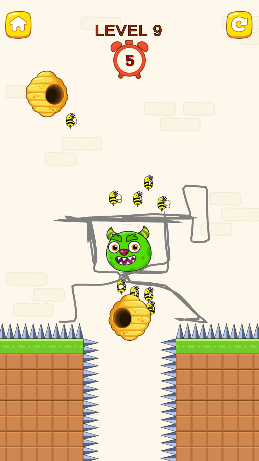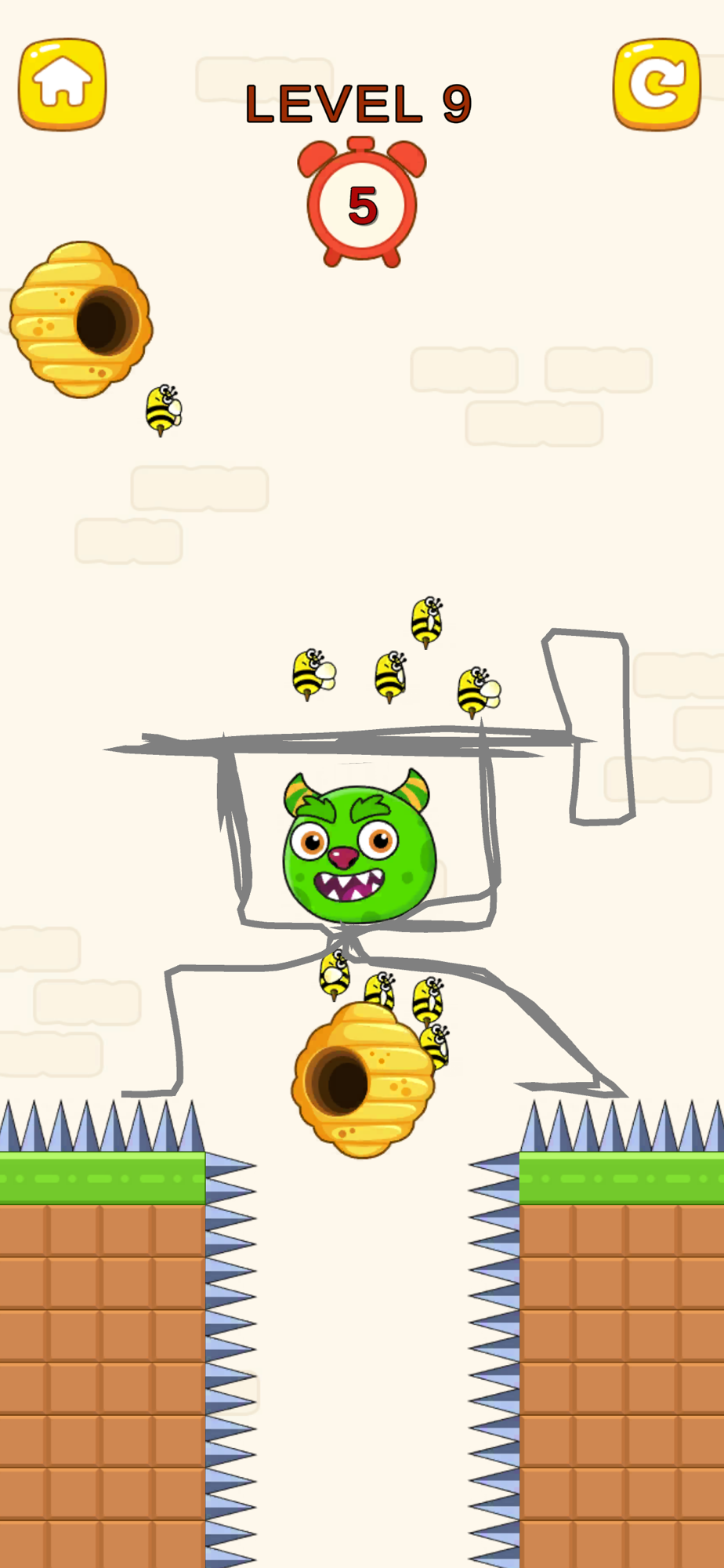 Help the jumbo josh to escape from attacking bees in order to save the dog pet rescue. Draw lines to prevent bees from hurting pet dog and save the jumbo josh.