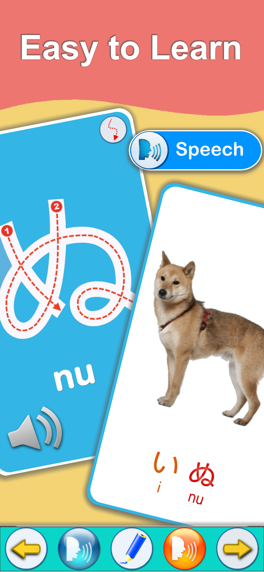 The best way to get started learning the Japanese Kana, which contains 46 Interactive flashcards, each card are voice-enabled.