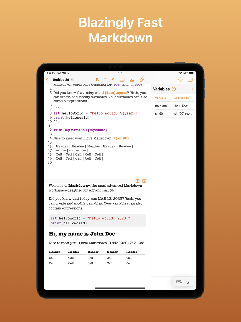 Markdown+ has been meticulously crafted for Vision Pro, iPhone, iPad, and Mac. With blazing-fast performance and powerful features like dynamic variables and real-time math rendering, Markdown+ delivers an unparalleled experience across all your Apple devices.