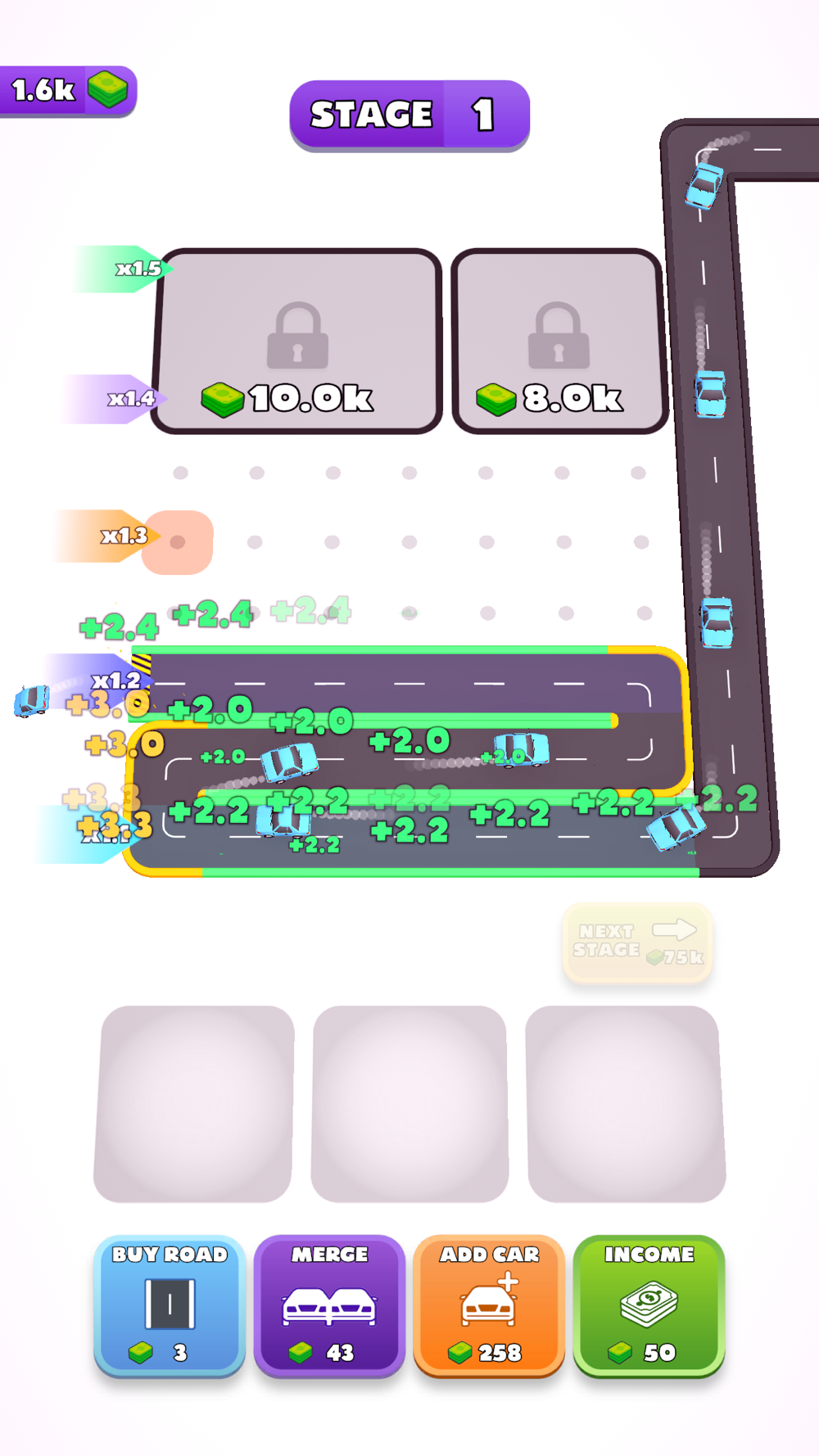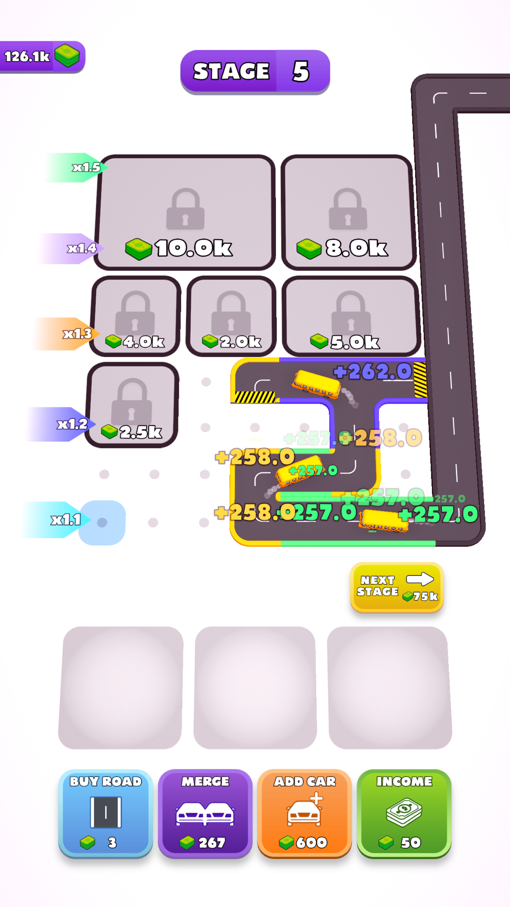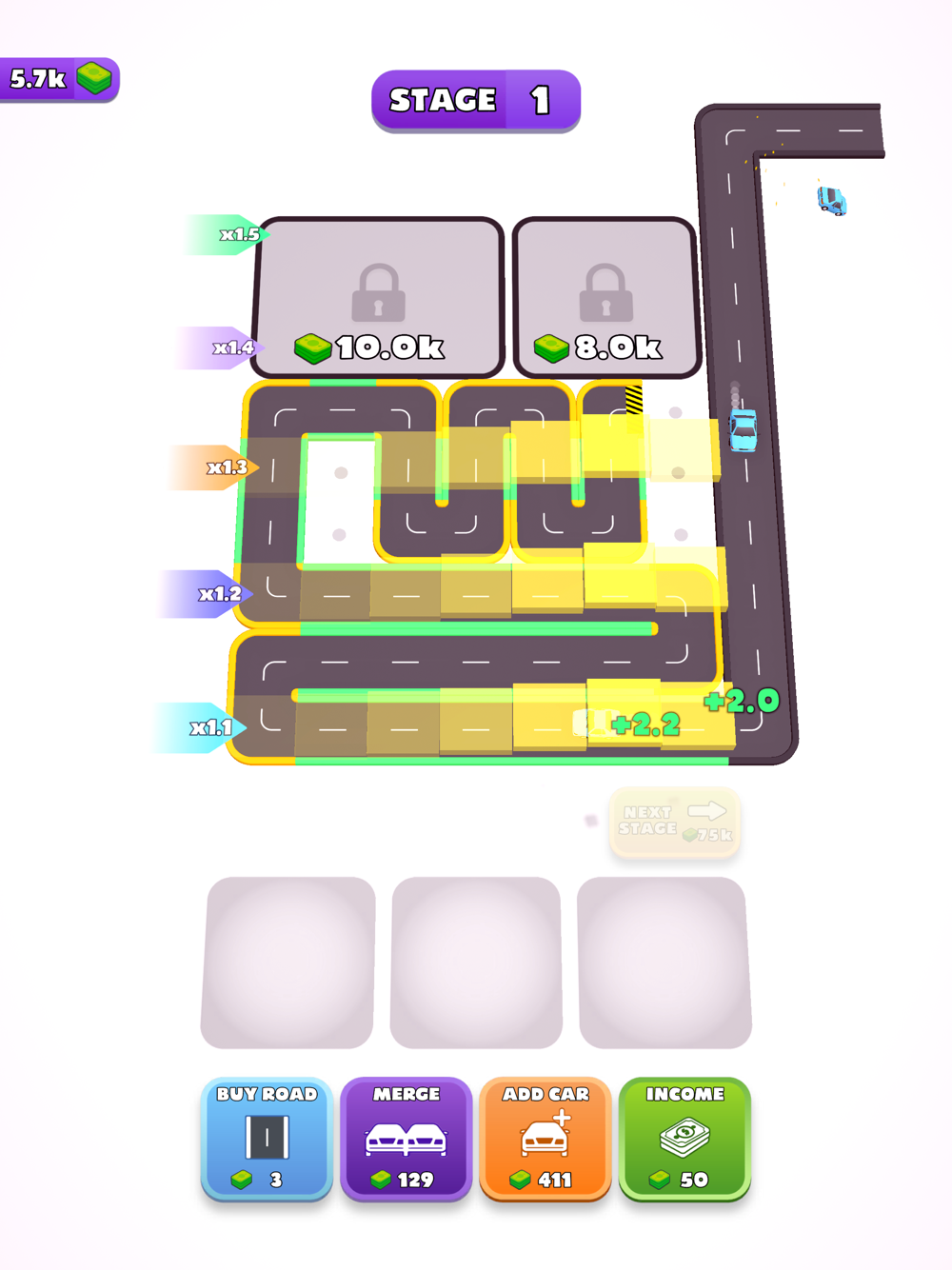 Earn money each time a car passes through the road you placed. Therefore, you have to place the roads wisely. More cars means more money. So don't be afraid to buy cars. Reach the target and pass the level.