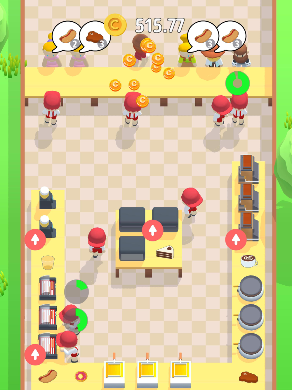 Simulate the operation of a catering stall in the game, upgrade the equipment, food, and hire employees in the stall.