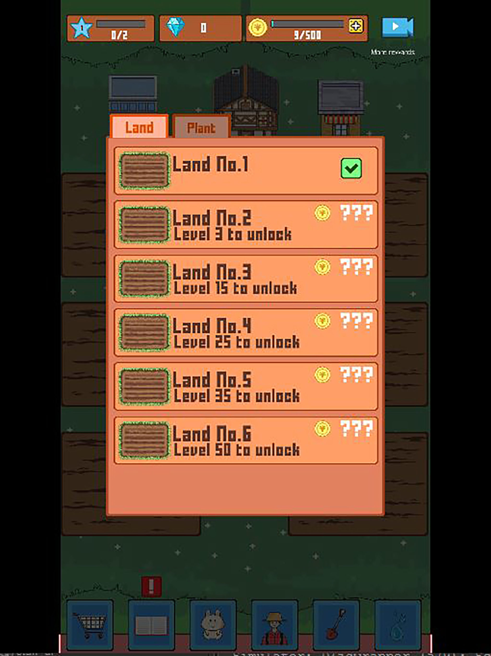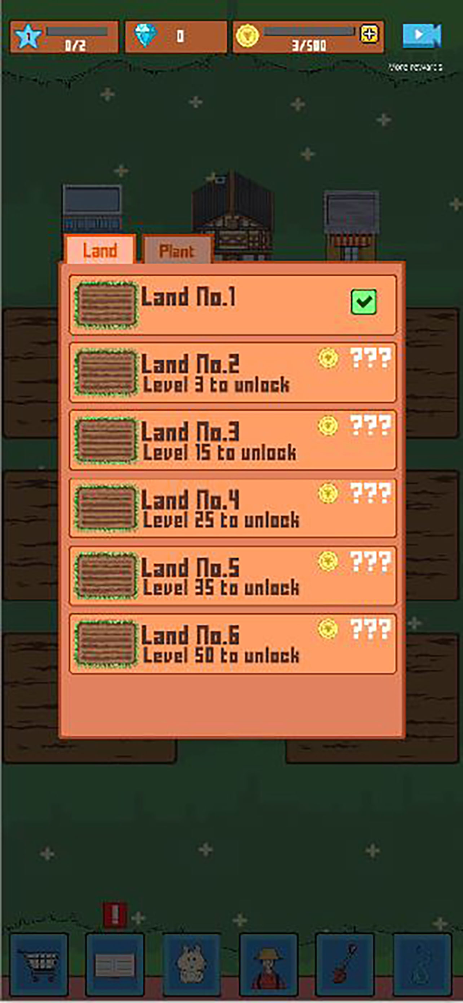 Expand more land by increasing character level. Owning more new land to be able to grow many kinds of plants such as: Carrots, radishes, cabbage, corn...