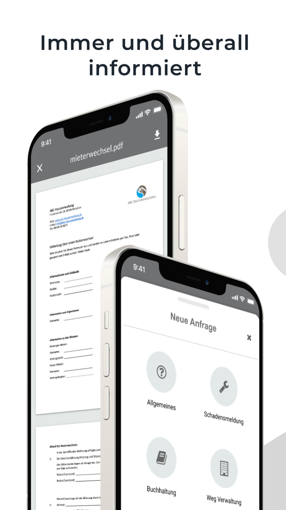 - Schadensmeldung direkt via Smartphone inklusive Fotos an die zuständigen Personen senden
