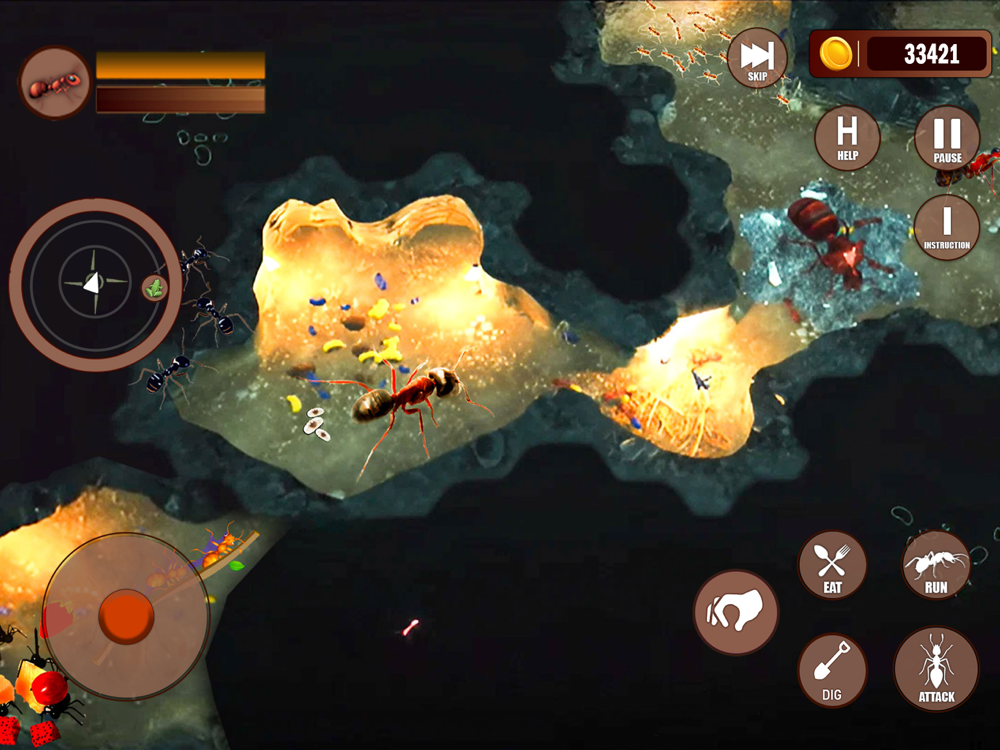 In this Ant Underground Colony Kingdom Anthill of an ant colony simulator is the same as the castle of an ant empire, which can provides a safe place for the offspring to grow ant family simulator. In this The Ants Colony Simulator Anthill layout is strategically too difficult and crucial to face your animies, so you should have to plan your hive wisely to fight with enemies in ant games, construct tunnels different in underground kingdom in ant legion games, thus building your ideal ant empire in ant samsh games! the number of ants in a colony simulator represents the rise and fall of an ant empire because it depends upon your ant army. in this ant queen simulator, For the development of your 3d ant empire game, you have hatch as many ants simulator as possible in this ant simulator games. So, you can lead them to fight the ants, plunder resources, and expand your territory in ant fusion! To reave resources and expand territory by the queen by born new ants, you must have build a mighty Ant Troop in colony simulator.
