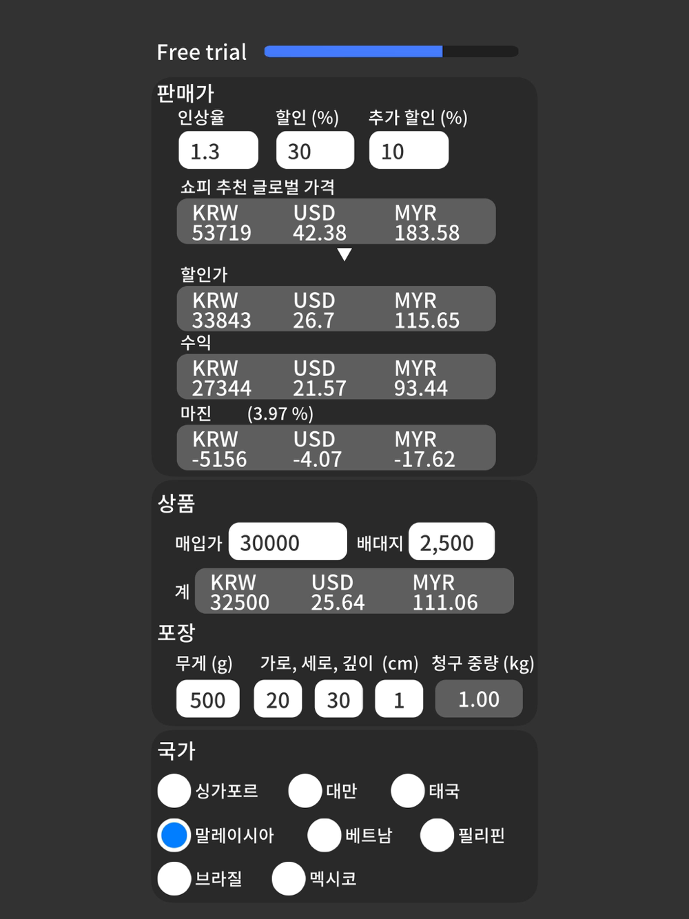 - 쇼피 코리아의 price tool 엑셀을 기반으로 계산