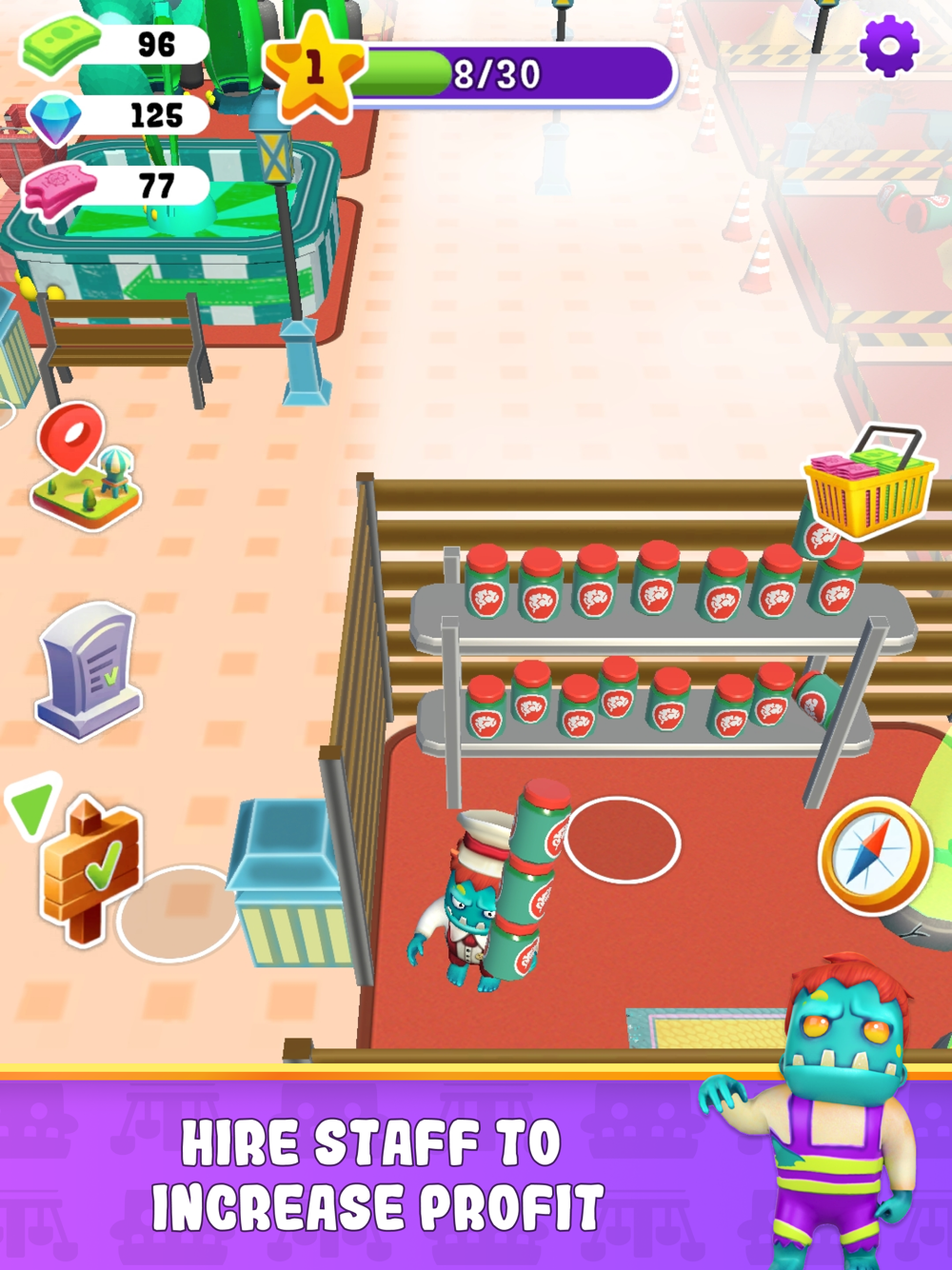 In "Zombie World," you'll find yourself immersed in an idle tycoon experience like no other. Build your park, manage your staff, and upgrade your attractions to make your amusement park the go-to destination for zombies and humans alike.