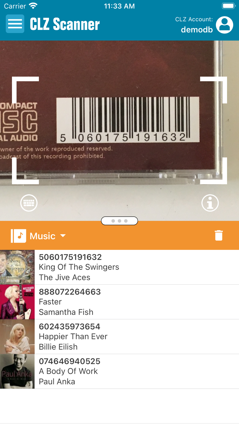 CLZ Scanner is a barcode scanner app for use with the Connect web-based software and the Collector desktop software. In short, you can use CLZ Scanner to scan barcodes with your phone and instantly send the scanned barcodes to the Add by Barcode tab of your Connect or Collector software on your computer.
