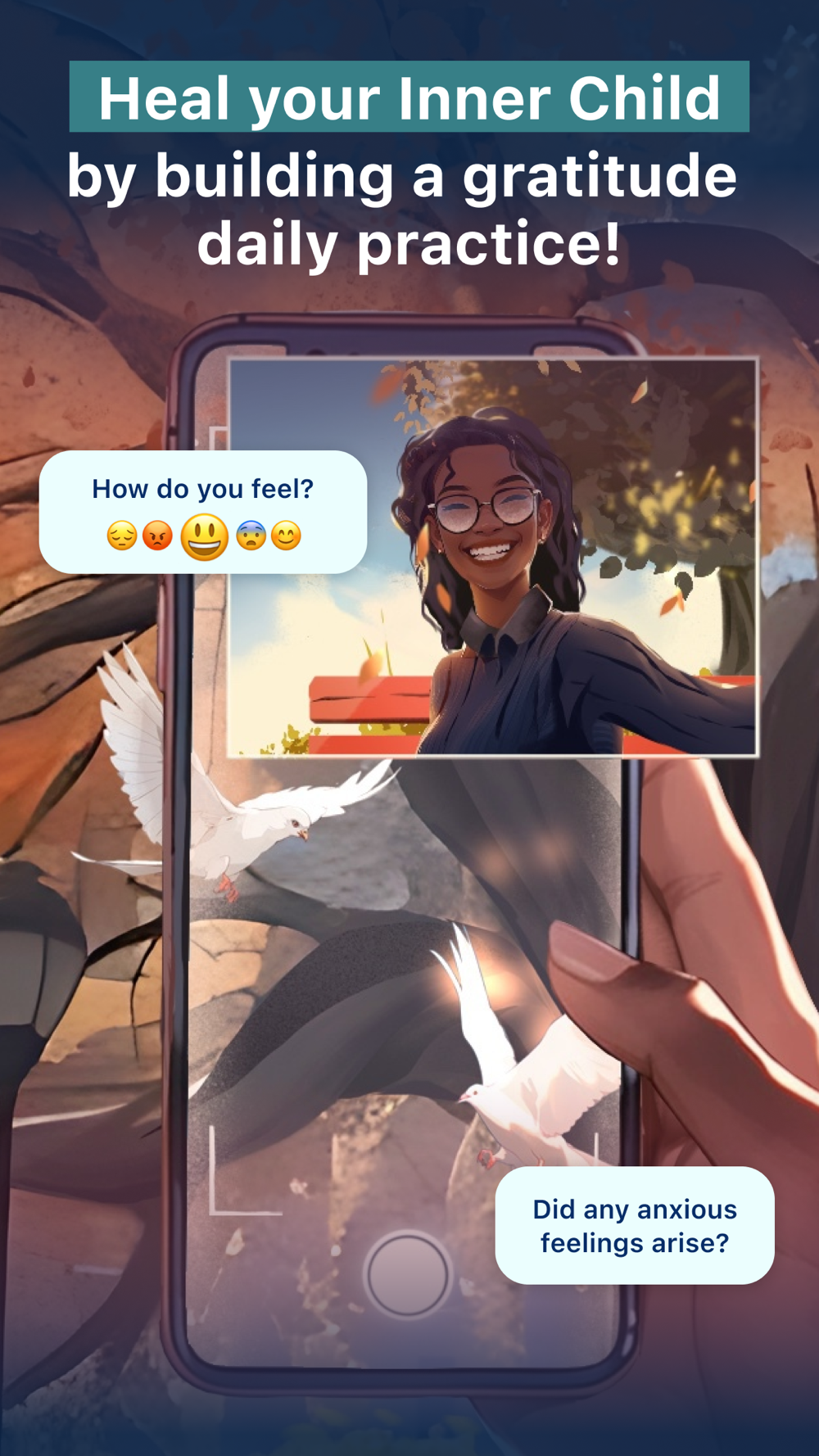 Lumière guides you toward a grounded state, helping you release stress and restore calm. By noticing small moments of joy and gratitude, you begin to soothe your nervous system and reconnect with your inner child.