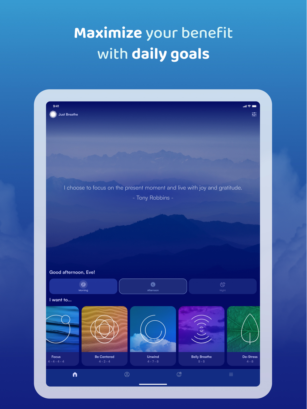 Build a daily practice of mindful breathing and meditation. Take a big leap to improve your mental health by incorporating Just Breathe into your daily schedule.