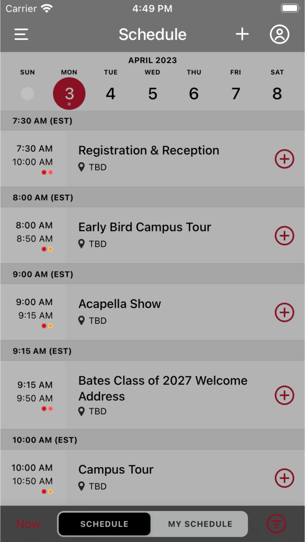 Ability to search the Schedule, Pinned Tracks and My Schedule features.