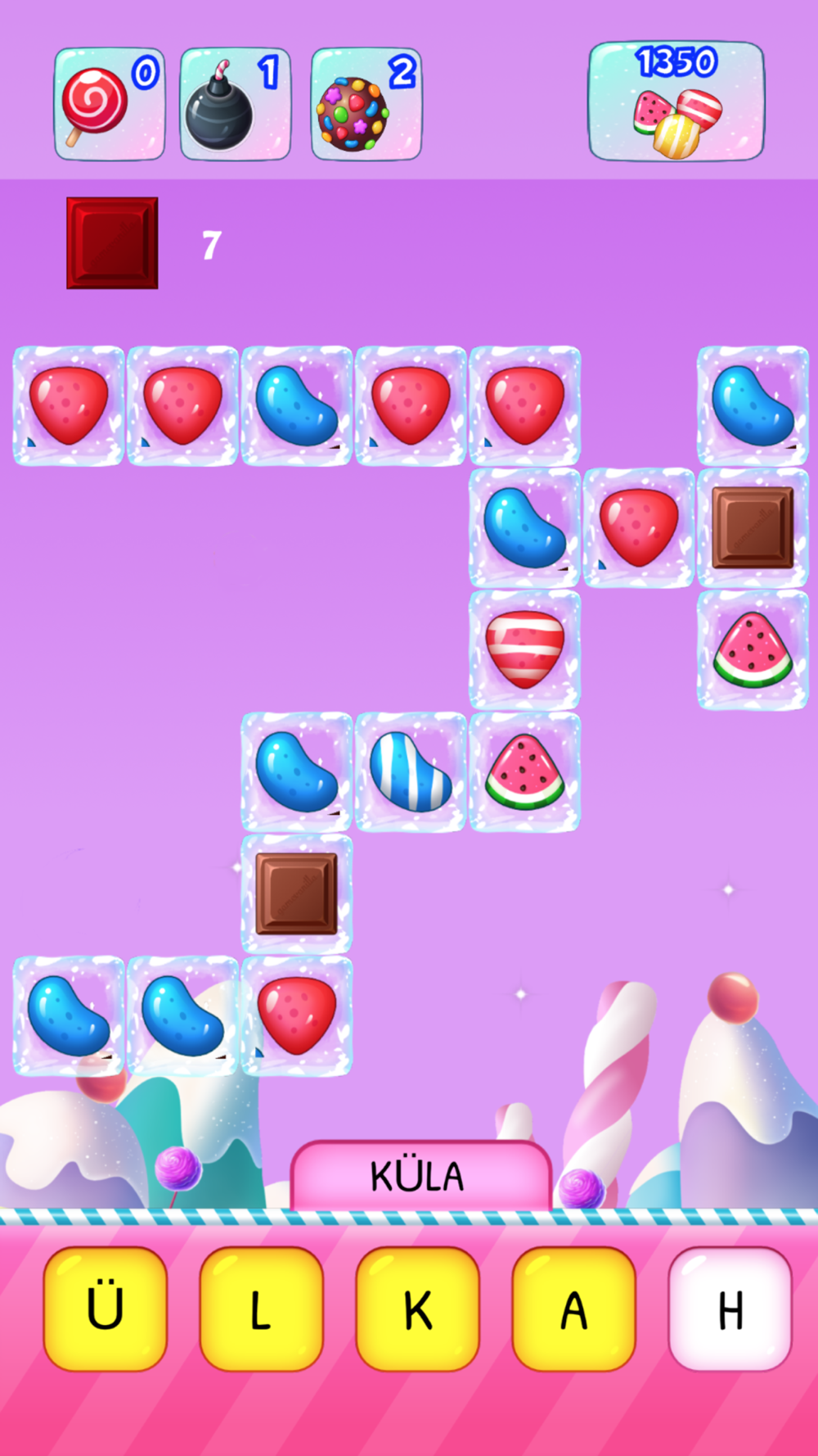 Renkli şeker patlayıcılar yardımıyla kelimeleri bul, haritada yeni yerler keşfet ve şeker koleksiyonunu büyüt. Şekerlemeler bu yolda yardımcın olacak. Olabildiğince patlat ve haritada hızla ilerle. Bakalım sona ulaşabilecek misin ?