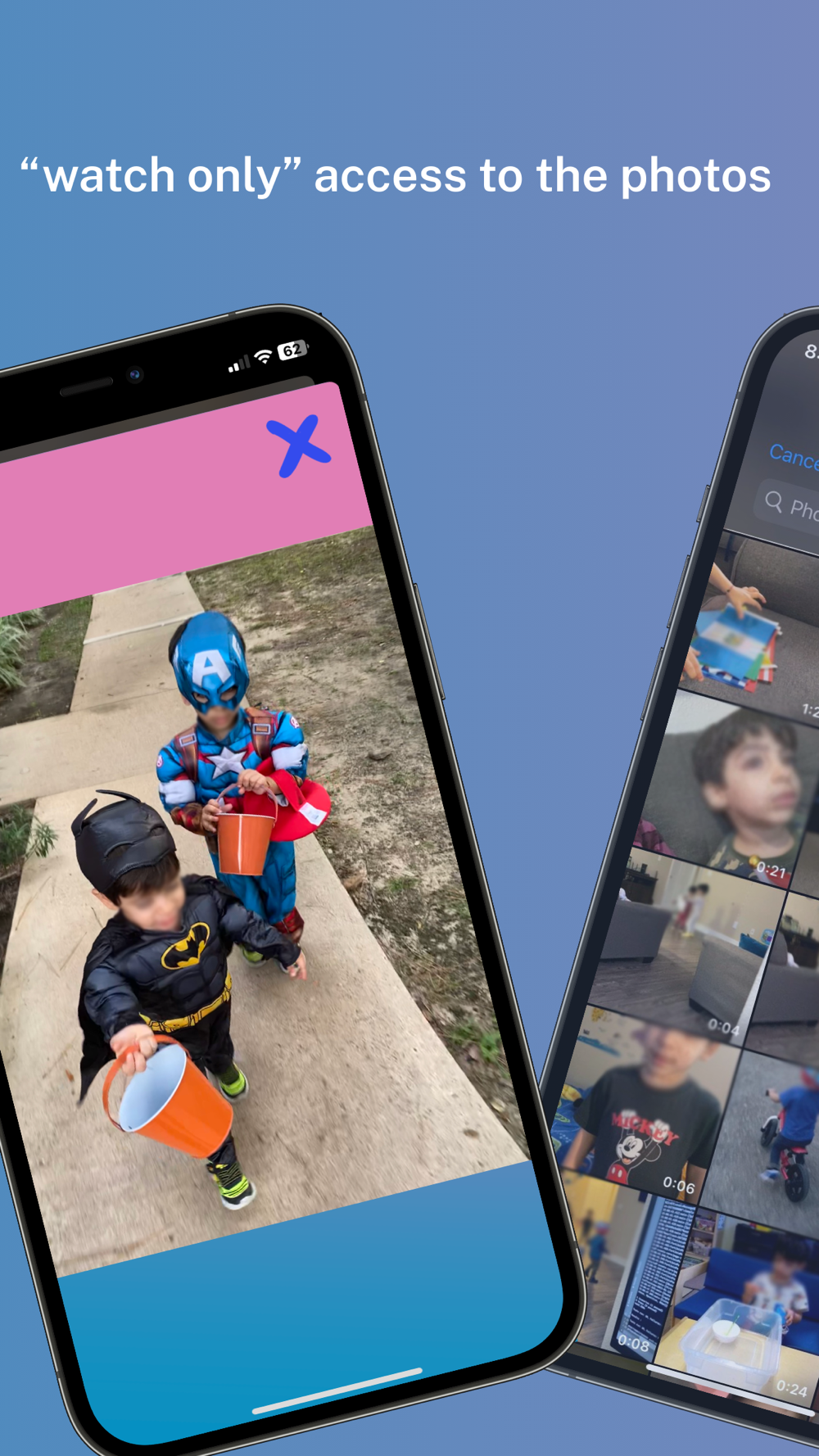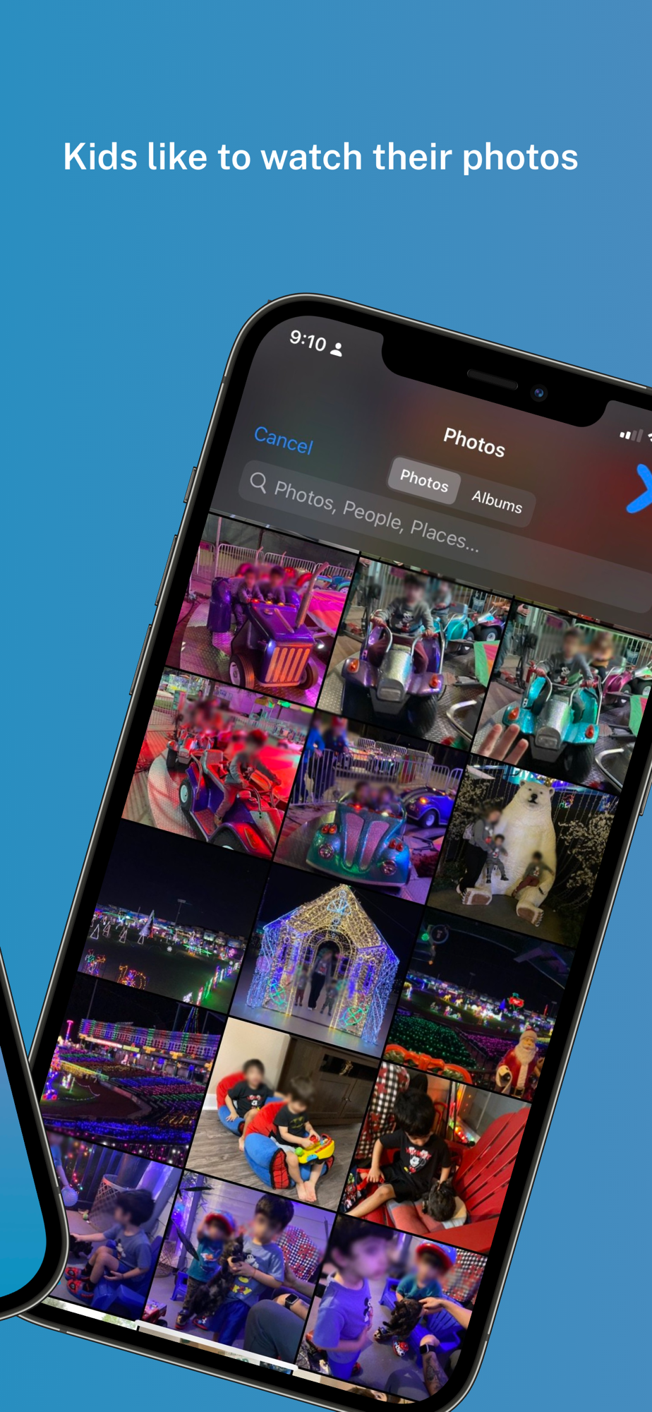 Secure content: Avoid your kid delete/share your photos/videos. Kidenv provides “watch only” access to your fotos/videos.