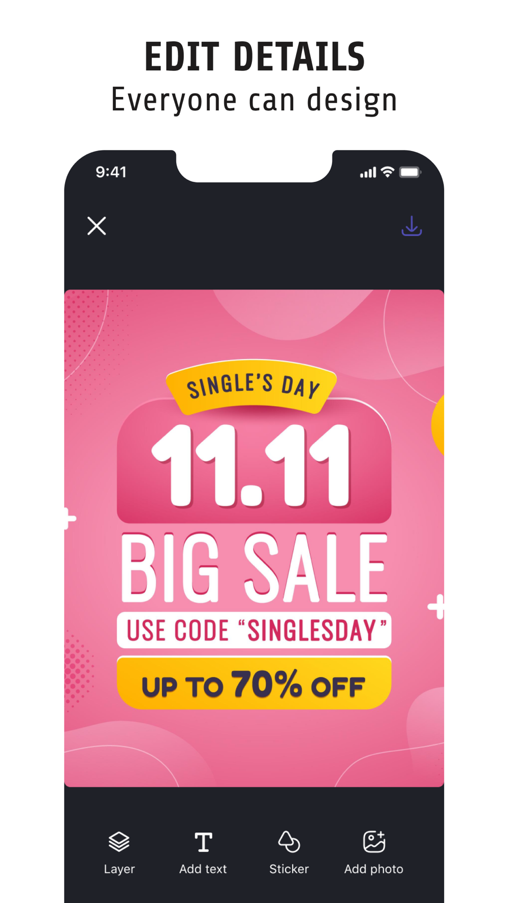 - Easy-to-use adjust color, size, gradient, texture, opacity, shadow, type and position for all stickers in template.