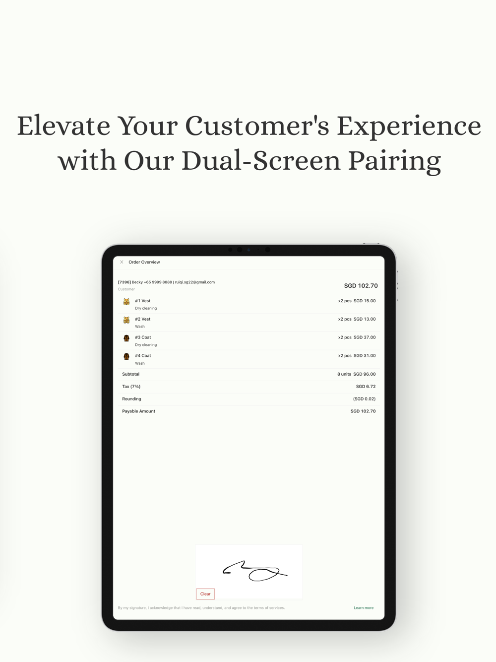 EasyBiz Cloud POS is a comprehensive mobile application designed to help laundry, bag service, and alteration stores easily manage their both in store & online sales and streamline their operations. Our mobile POS app is linked with our online website product, so customers can directly manage their online sales using their POS.