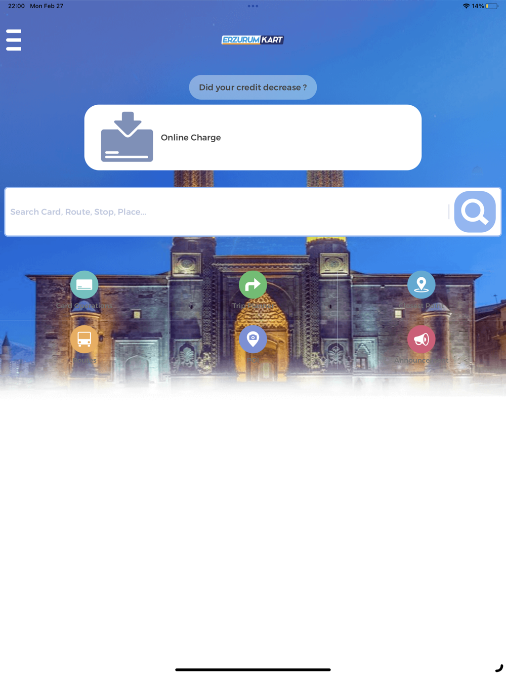 Şehir içi ulaşımında ihtiyacınız olan her şey Erzurum Kart uygulamasında.