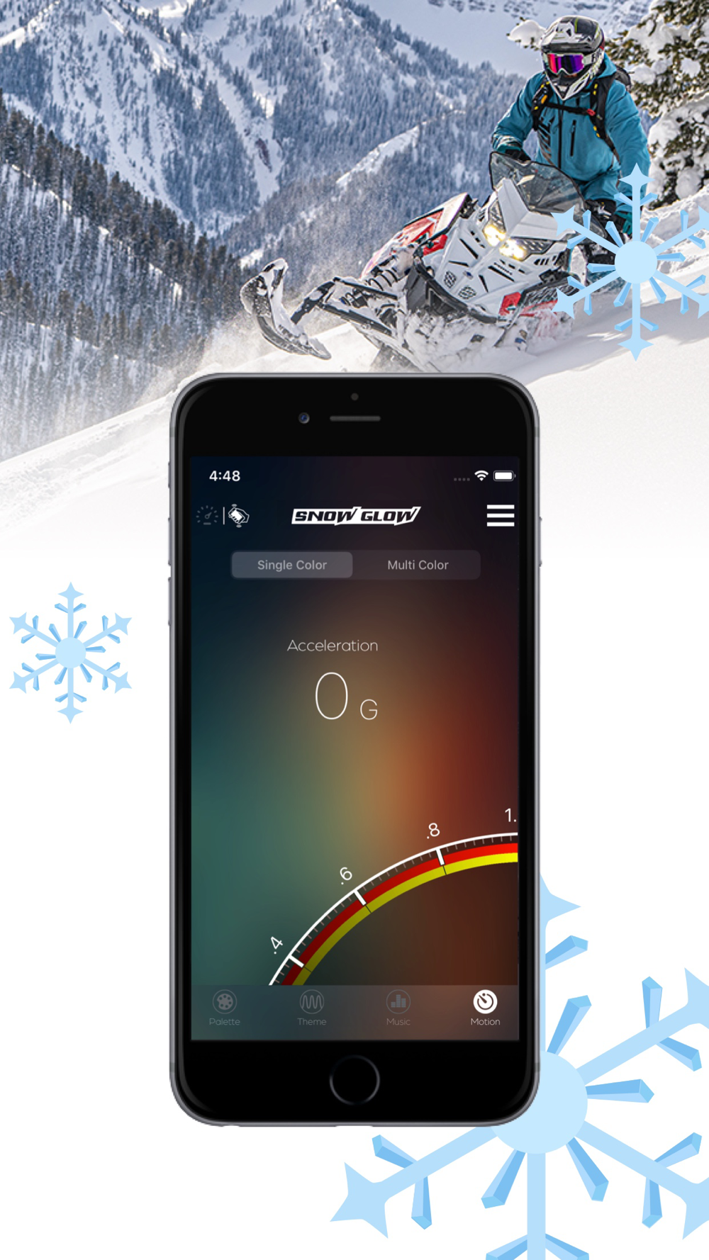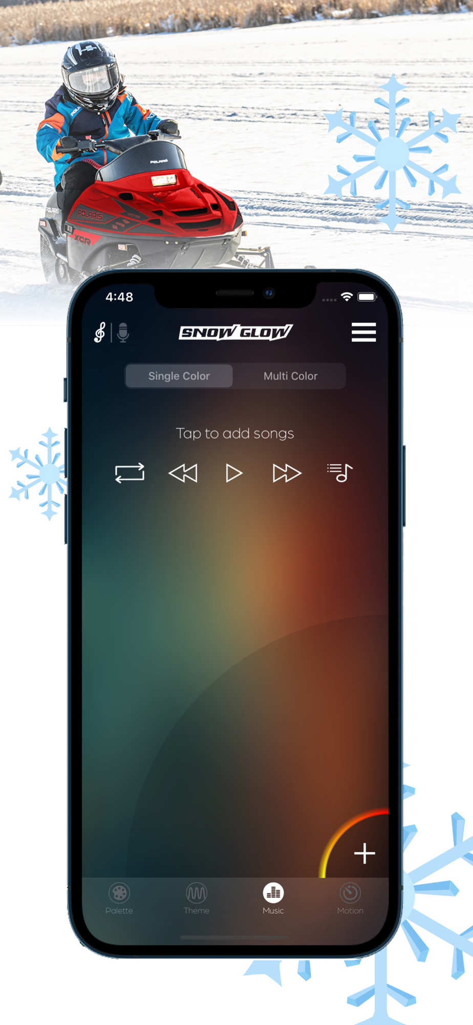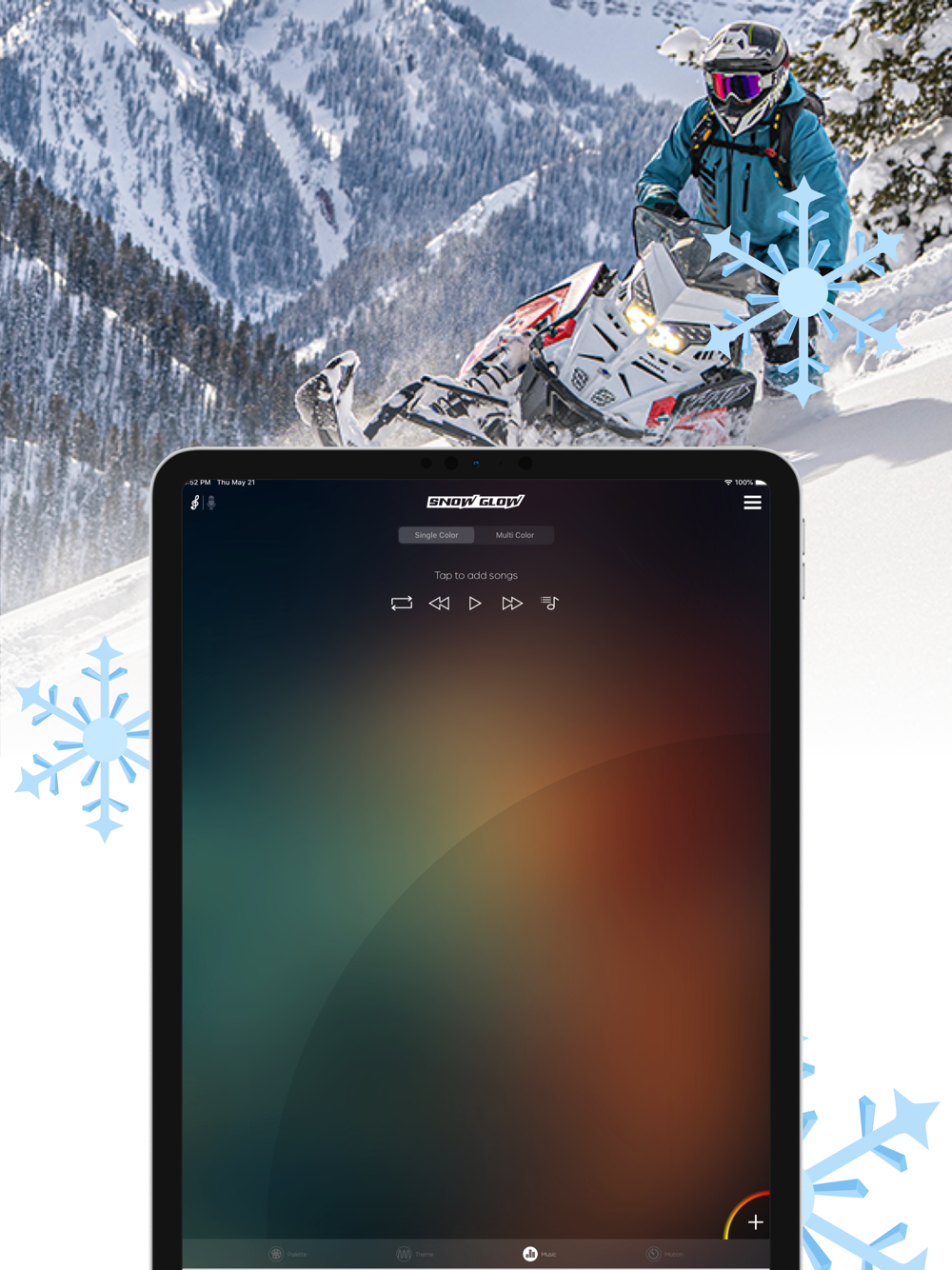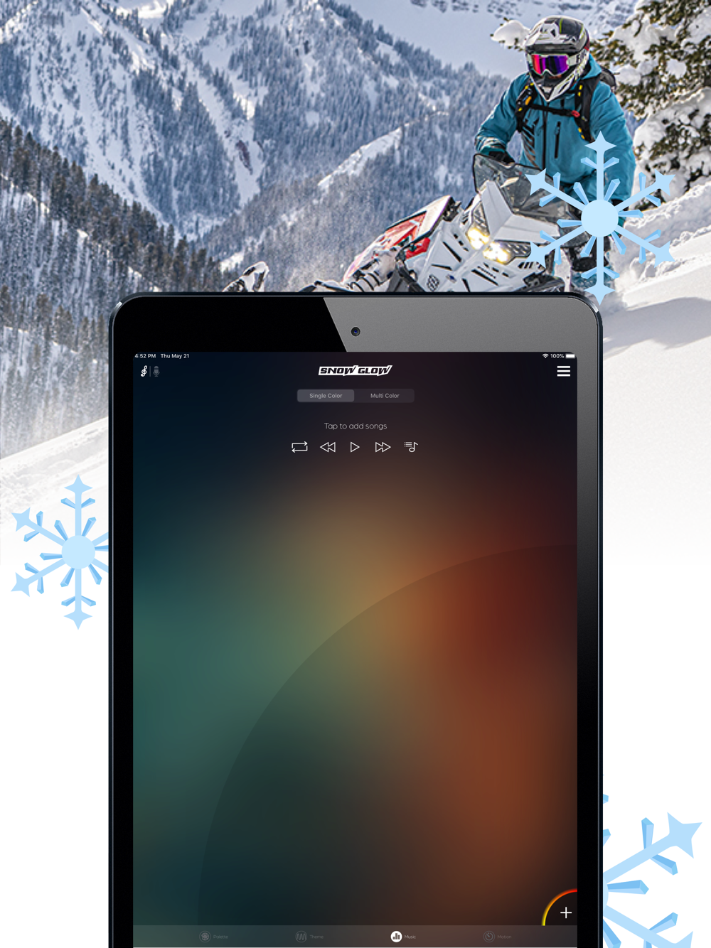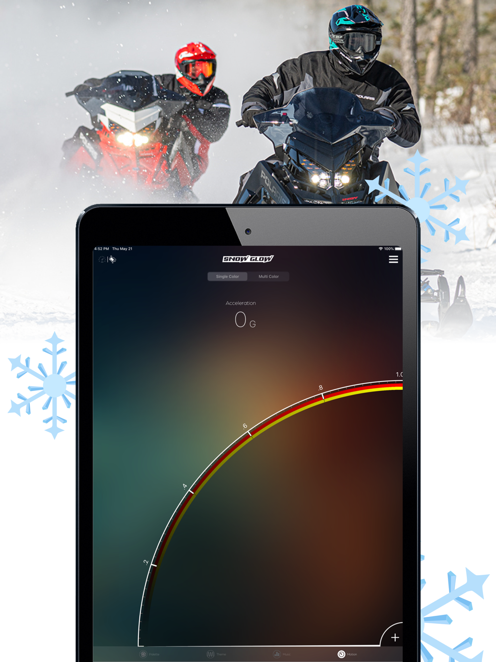 Snow Glow is an innovative smart accent lighting that transforms the look of your snowmobile in the dark. It highlights the beauty of your vehicle with 16 million colors and can pick one of them with your phone camera. Want to sing a song and let your vehicle dance to it with light? Turn on the music sync feature and prepare to be amazed. The app also comes with over 10 prebuilt holiday themes and the features to build your own theme for any memorable occasion you need.