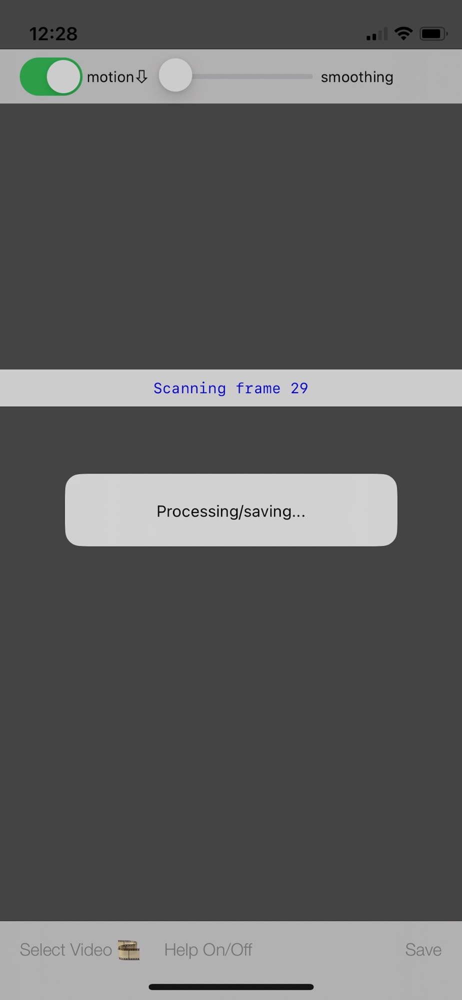 This app reduces apparent motion of objects in your video clips, both up/down and side-to-side motion, along with rotation... saving changes as a new video; either jitter or major motion (your choice).