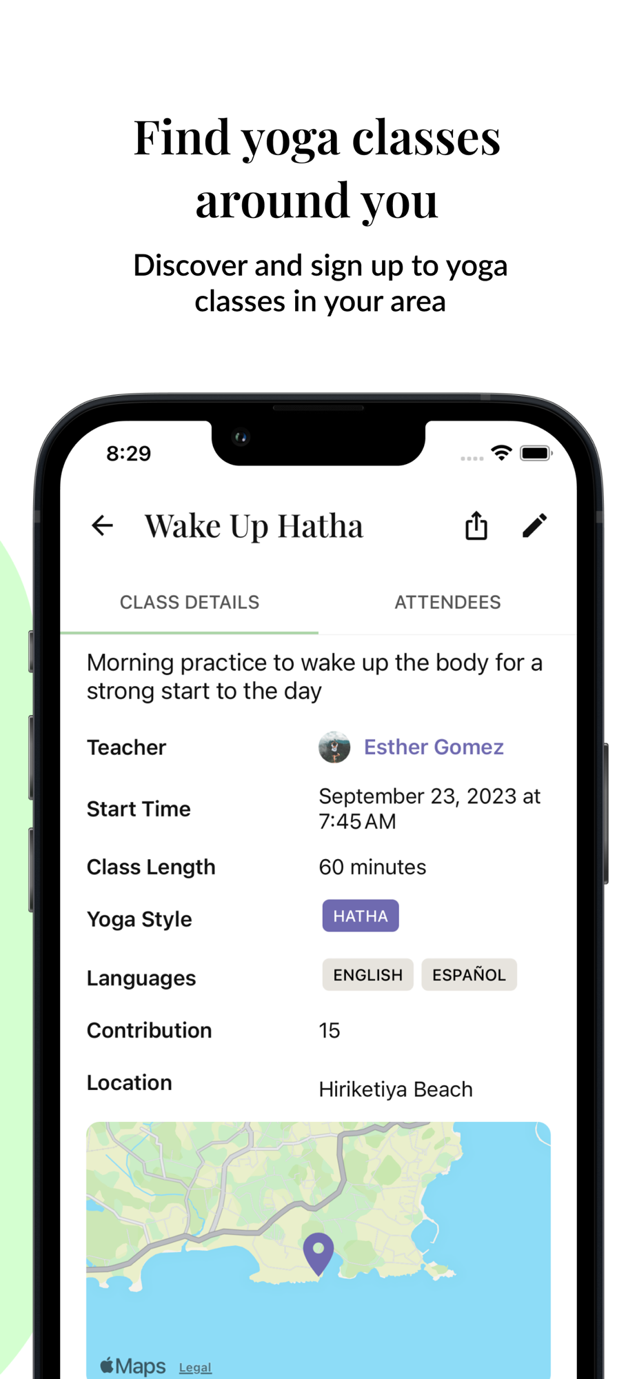 Travelling? Find classes with teachers who speak your language, with filters for language and yoga style.
