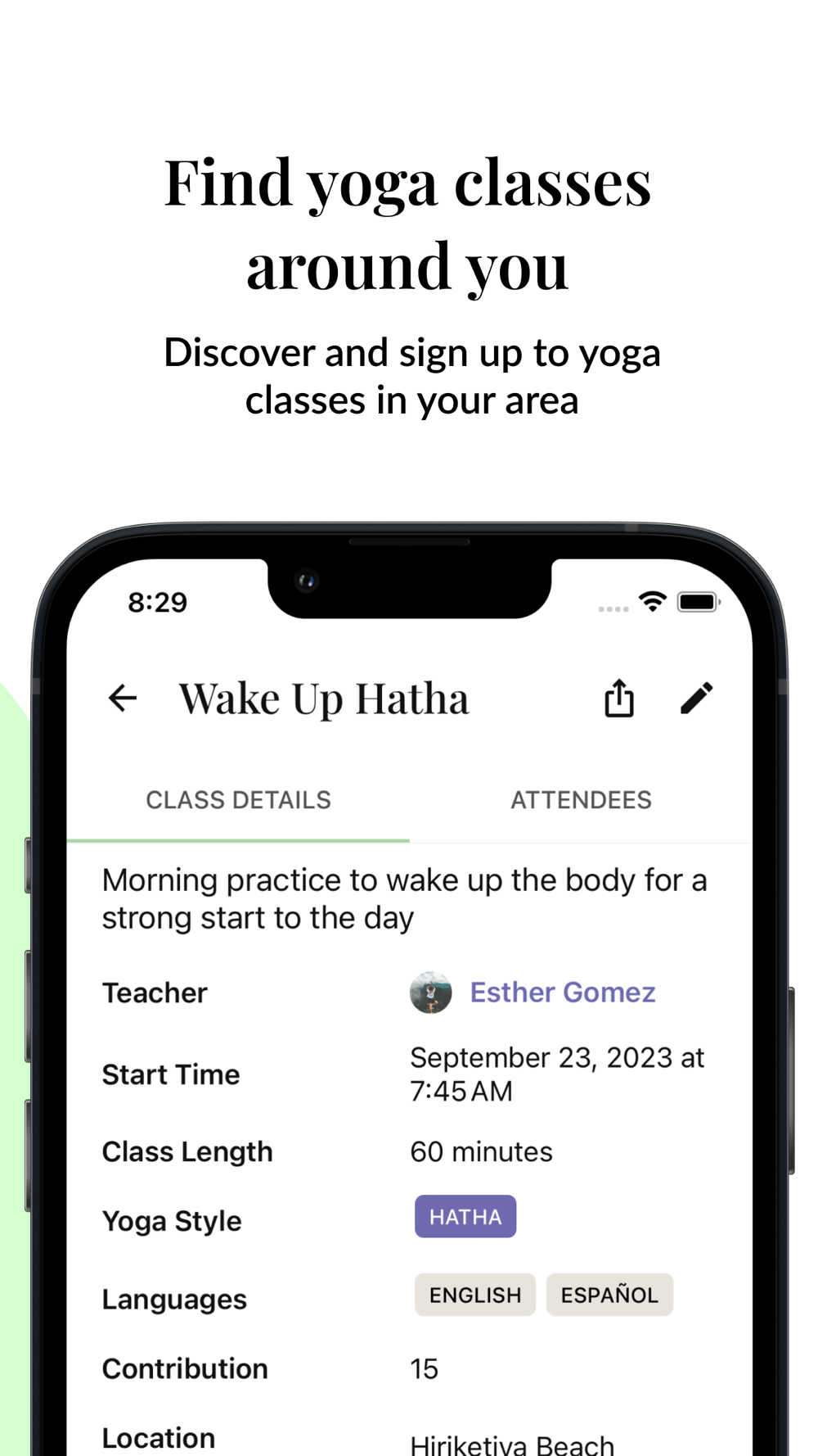 Discover and sign up to upcoming classes around you, and find and follow teachers to get updates on their schedule.