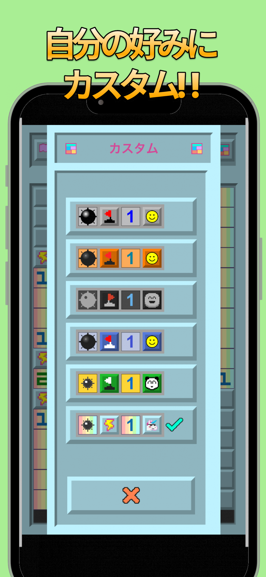 ・難易度カスタムでは縦横の大きさから地雷の数まで選べる!