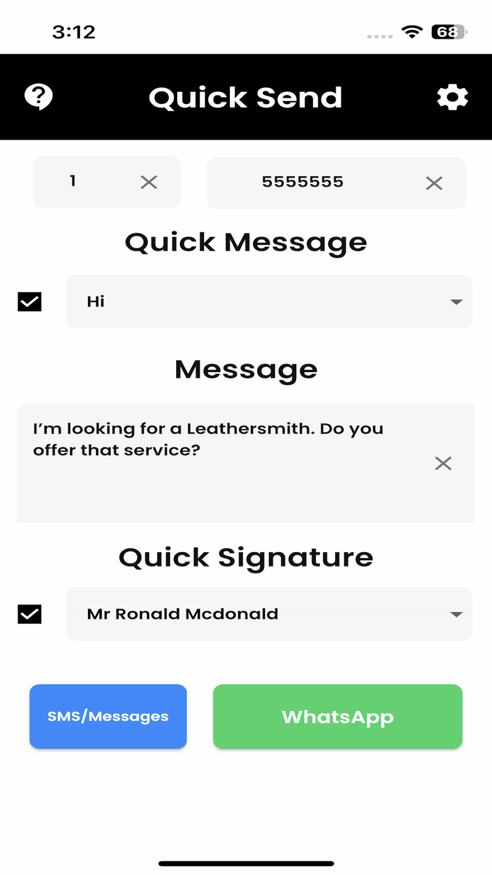 -Quick Send SMS via Messages App (Message, Quick Messages, Quick Signatures not supported)