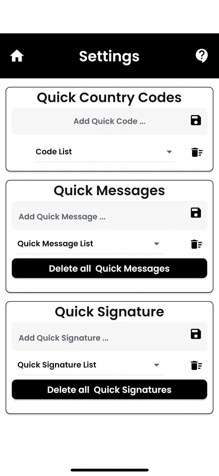 -Quick Codes: Add multiple Country Codes for quick selection when sending messages to different countries.