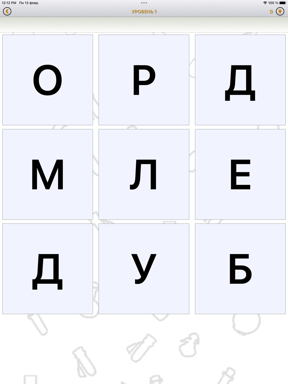 Выделяйте пальцем буквы и находите все слова, чтобы пройти уровень.