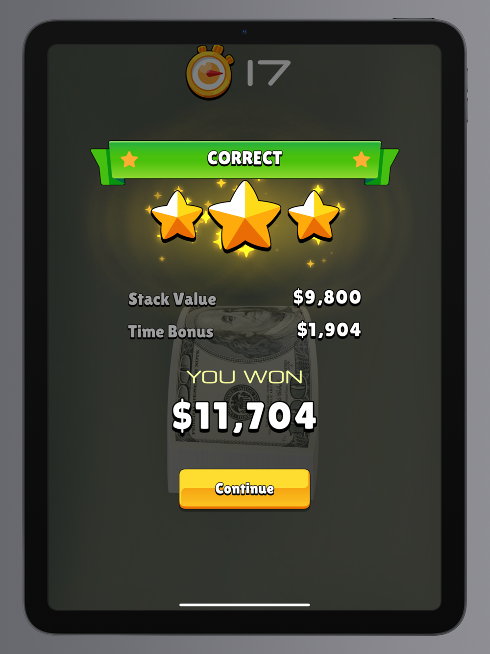- Time Pressure: Race against the clock to accurately count and guess the value of each stack.
