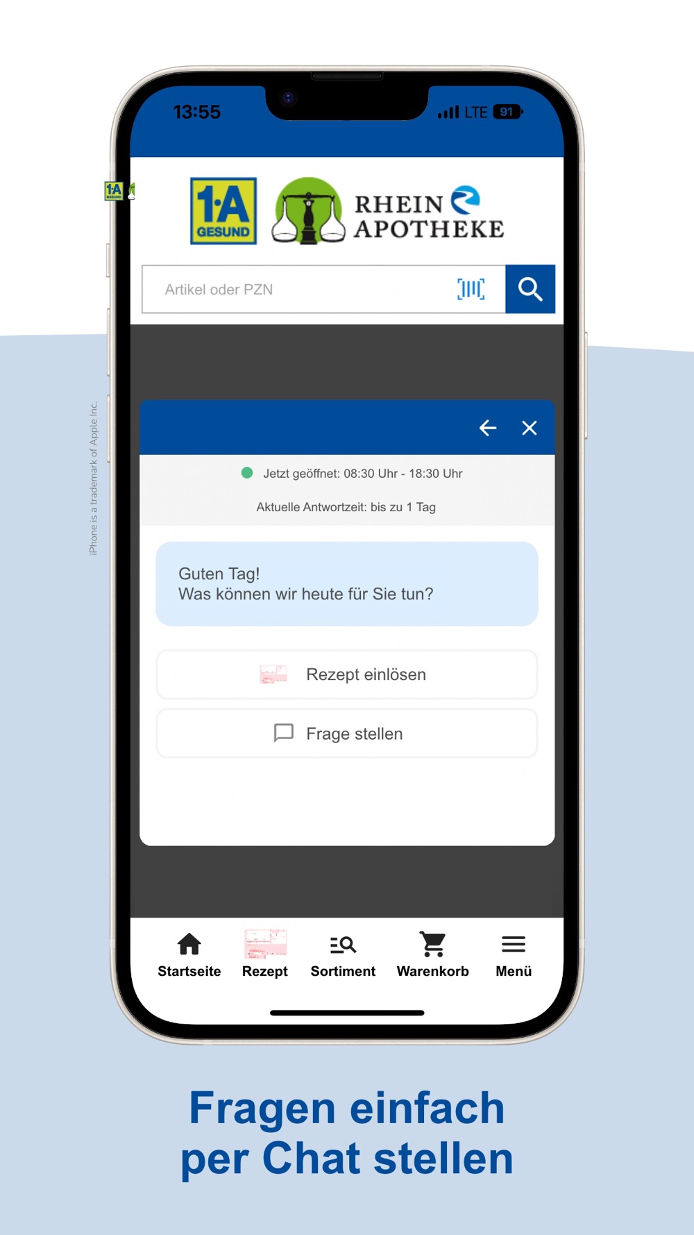 Wir bieten Ihnen über die App unser gesamtes Sortiment. Nicht sofort verfügbare Produkte bestellen wir für Sie und machen Sie in der Regel bis zum nächsten Werktag abholbereit. Gerne liefern wir Ihnen Ihre Bestellung per Botendienst direkt nach Hause.