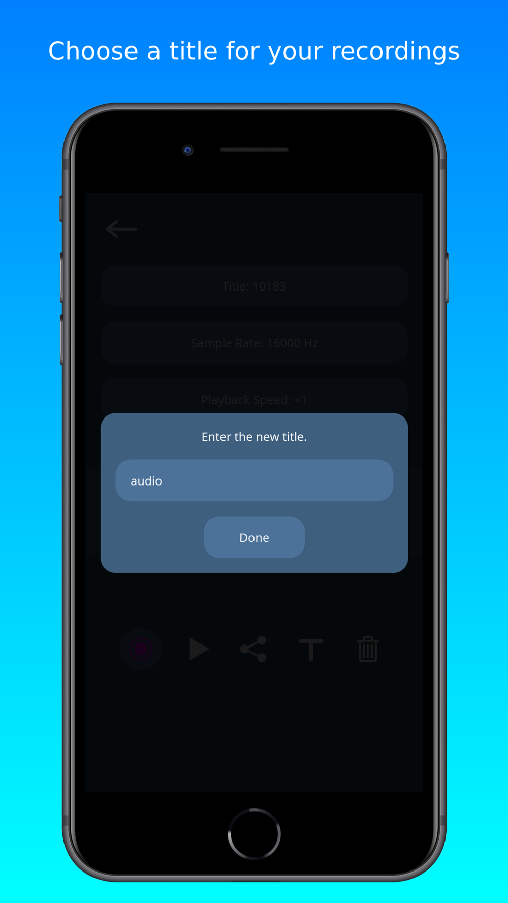 All recordings you make are available at any time from the app. You can open them, continue to record, play the audio, share them with your friends, or delete them to free up storage space. You can also choose a title for your recordings to better identify them later.