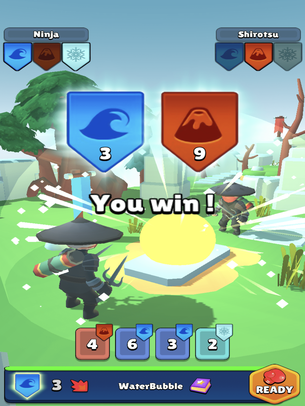 Make the good choice between your cards power and element, maybe fire can be better against ice ! But water beat fire too !