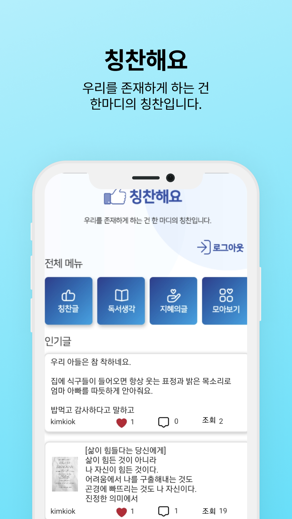 우리를 존재하게 하는 건 한마디의 칭찬입니다.