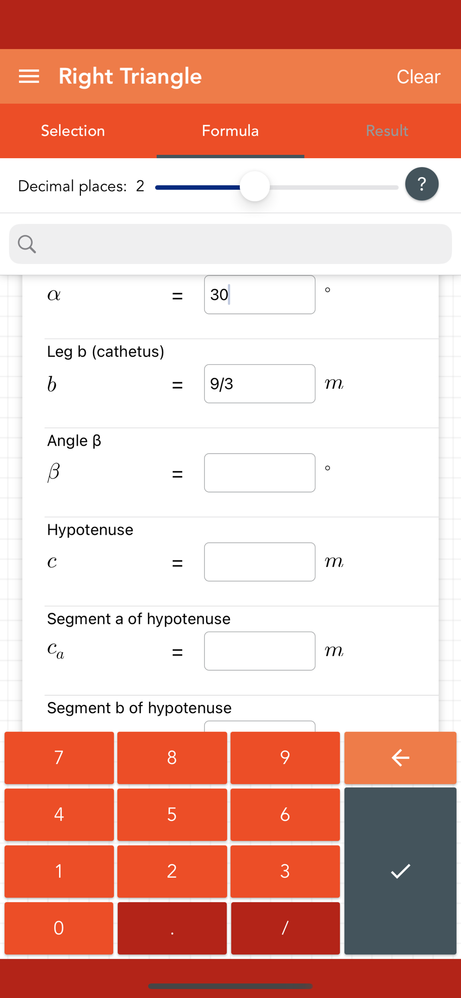 Several math topics are combined into one app. Choose a topic and enter your values to get the results with all solution steps.