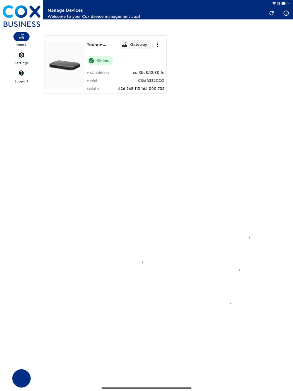 Cox Business WiFi app supports Cox Business Internet Gateway model 4332.