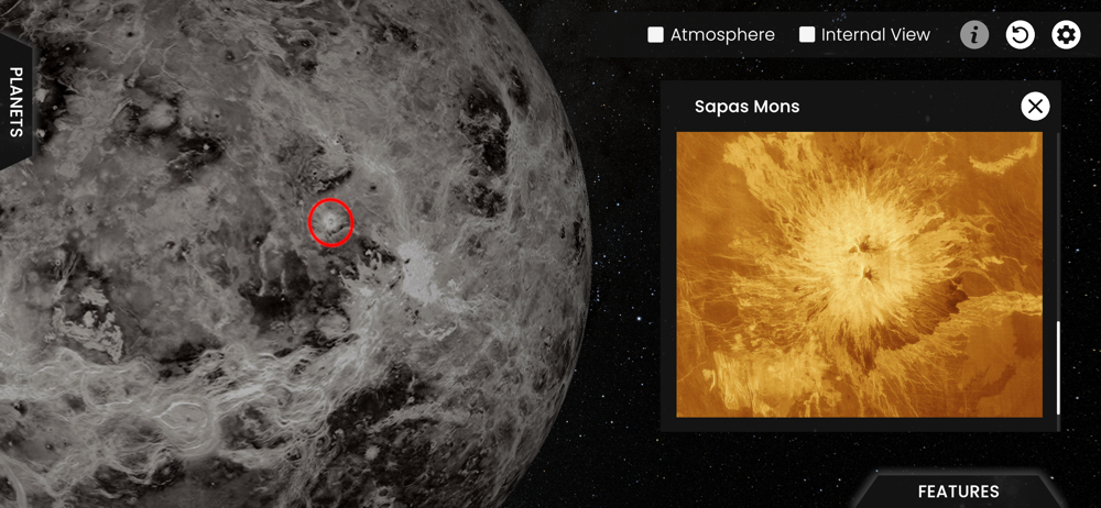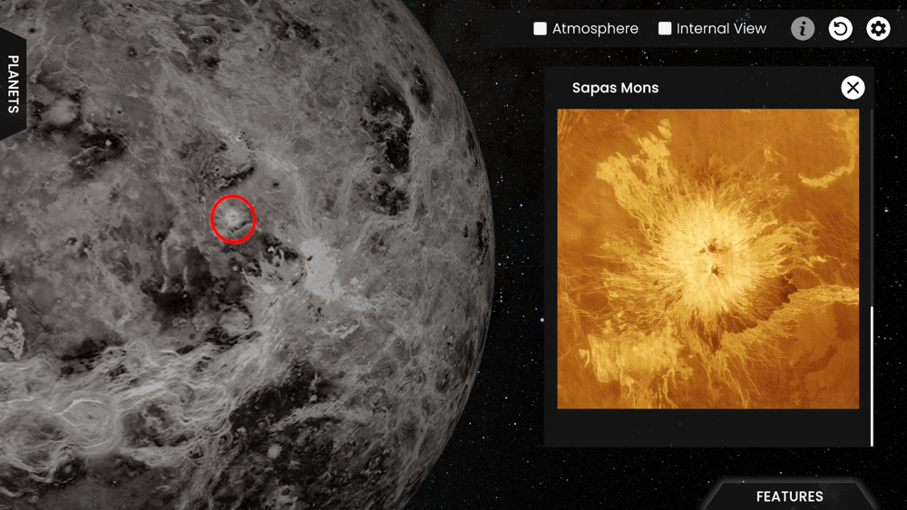 The models represented have been designed taking care of the maximum possible realism, from the true color of the surface of Venus, to the structure of the ring systems. In this way, you have the feeling of visiting each planet only a few thousand kilometers away.