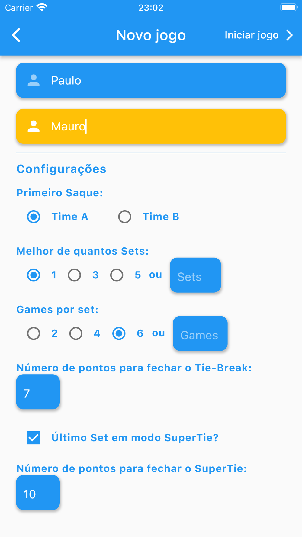 Registro de pontos e games: o aplicativo permite registrar os pontos de cada jogador em tempo real, assim como o número de games vencidos por cada um.