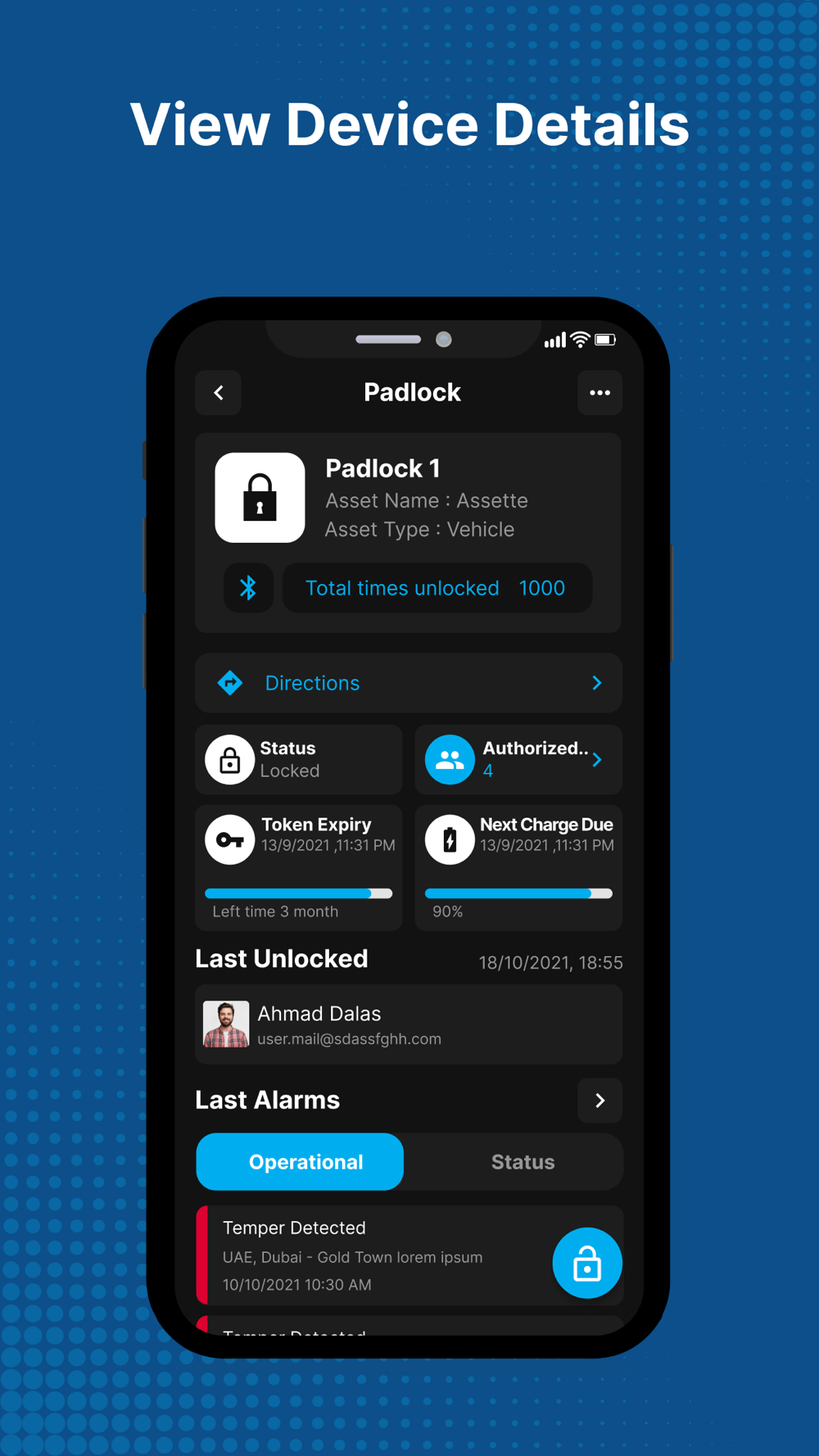 Secure and Manage your Assets Efficiently using Smart Padlocks. IoT Cloud Platform and Mobile App to Unlock the Padlocks, Create Quick/Scheduled Access to Employees/Visitors, View Logs and History, and much more.