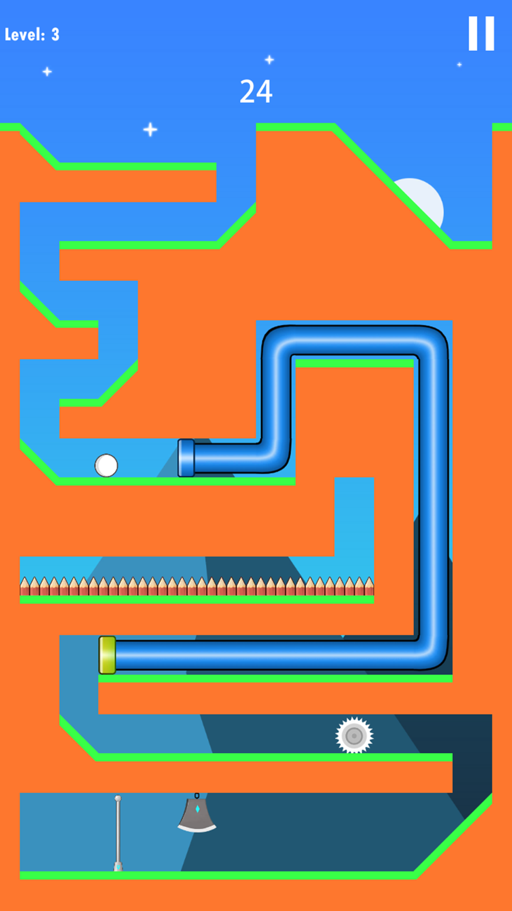 This is a puzzle casual game, the rules are very simple, you only need to tap the screen to control the different directions of the ball, you can avoid those traps, reach the end smoothly, and the game is won.