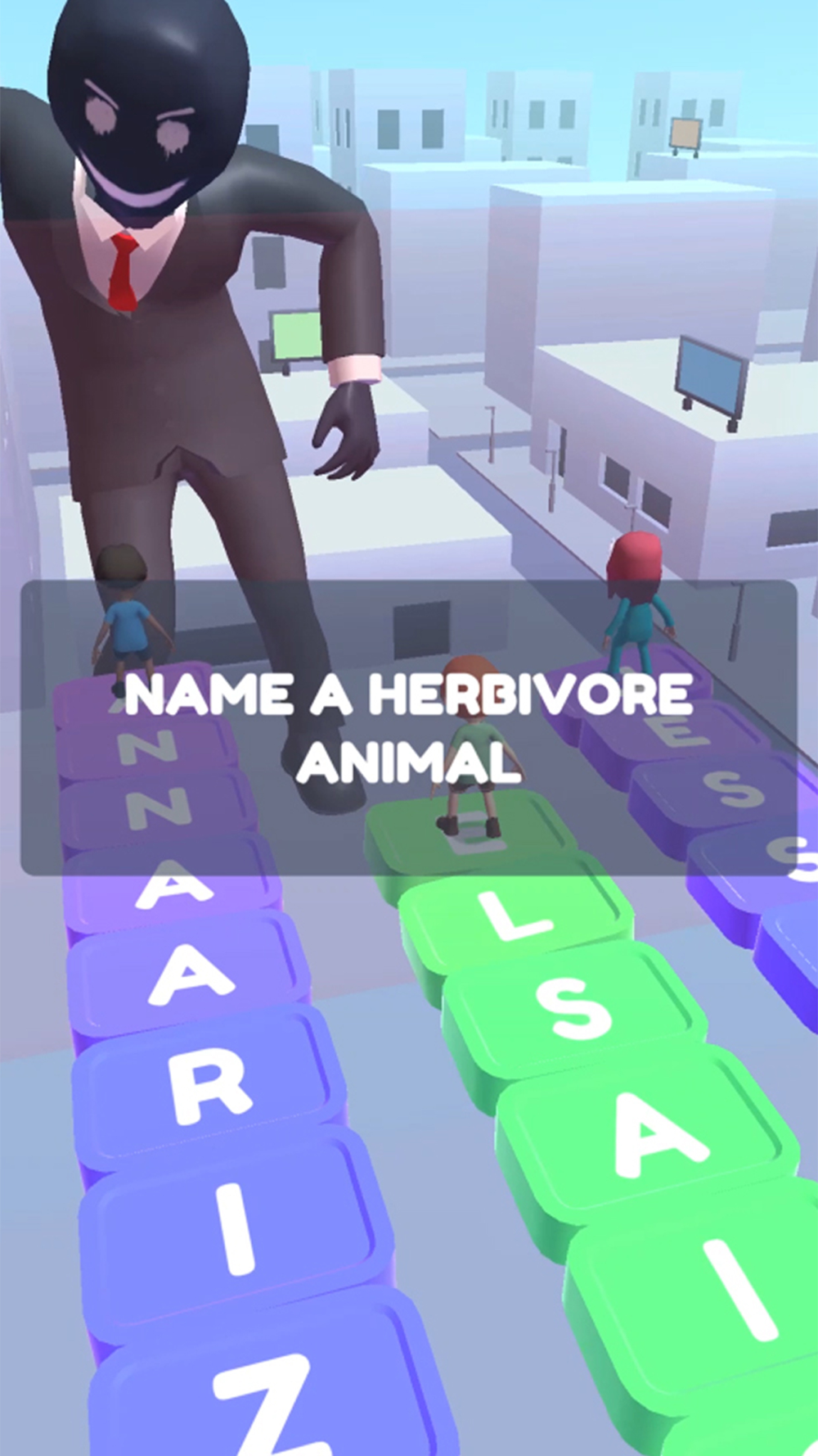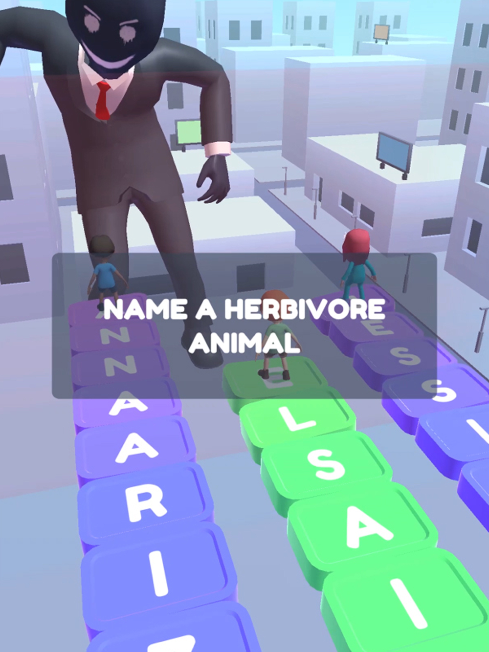 Guess the shortest word possible to avoid being captured by the menacing monster ahead of you. You'll need to use your word-guessing prowess if you want to beat your opponents and escape the beast's clutches.